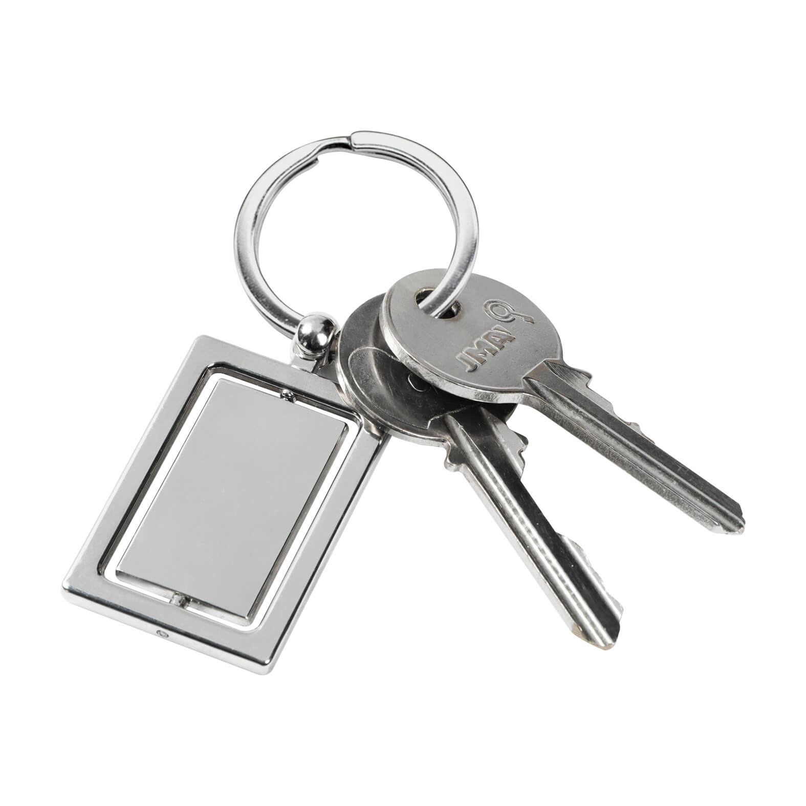 RECH Llavero metálico de forma rectangular con centro giratorio y aro reforzado. Incluye caja.
