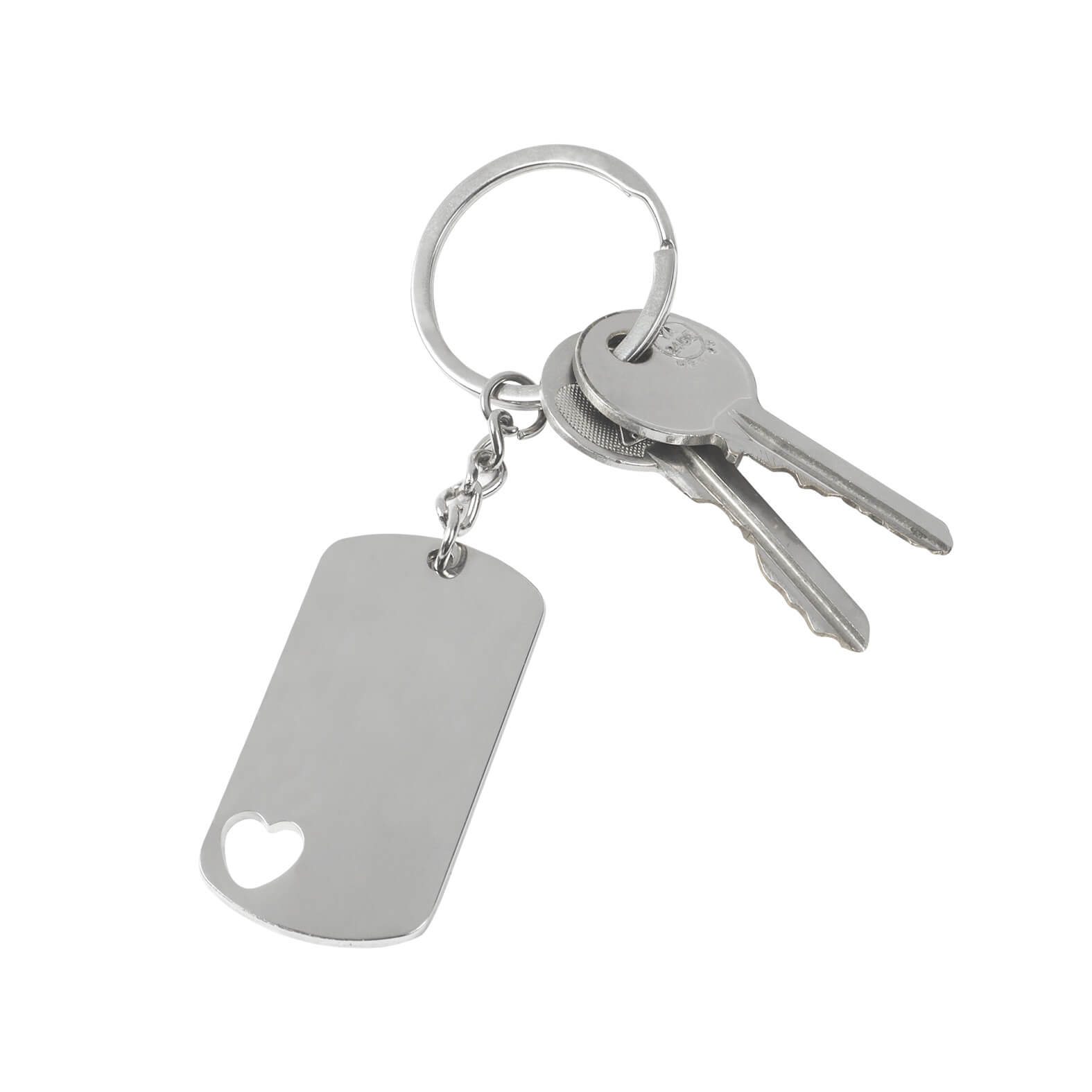 MOYO Llavero metálico rectangular con detalle de corazón en la parte inferior y aro reforzado. Incluye caja.