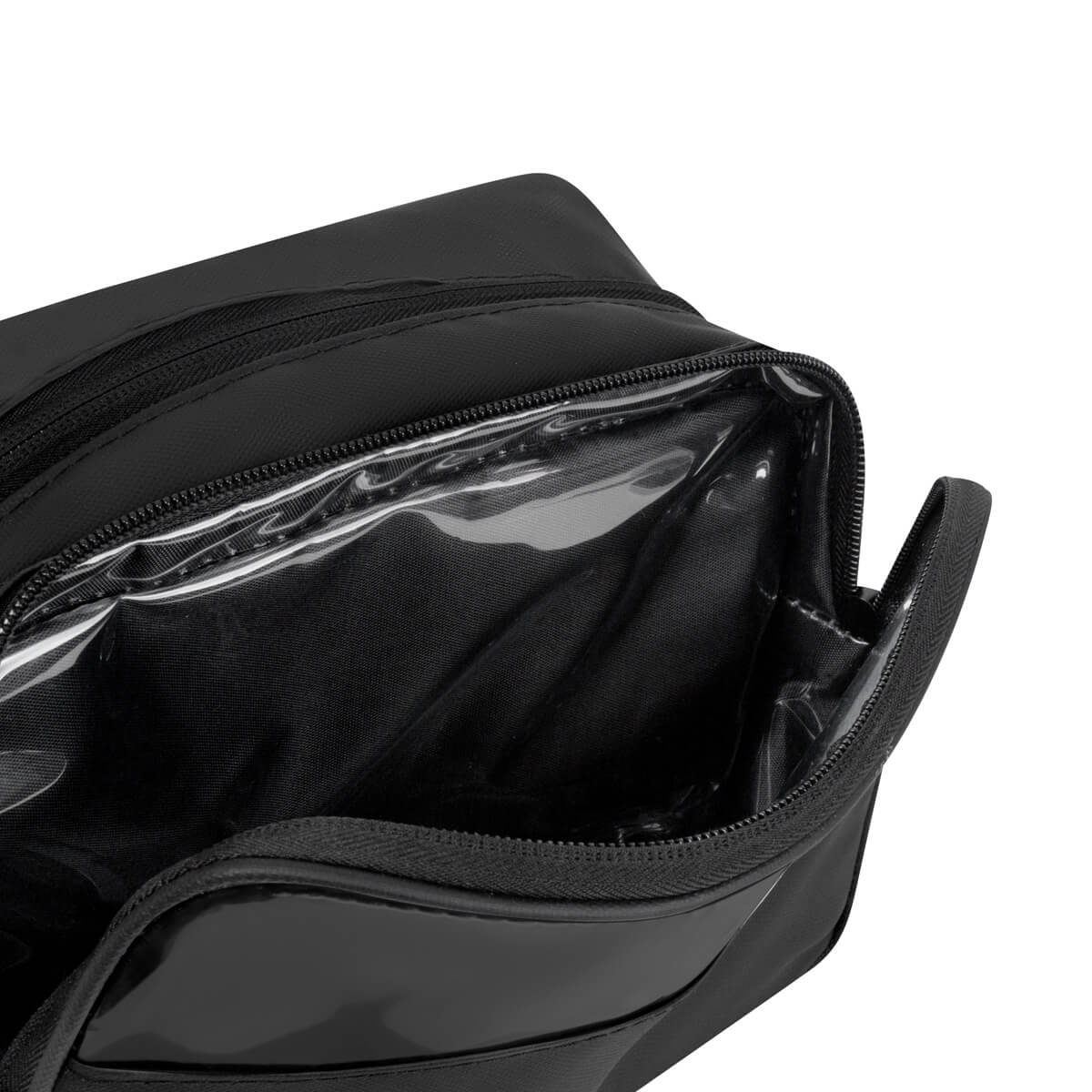 NÉCESER SMINK - Neceser de poliéster resistente al agua. Incluye una mica PVC en el compartimento frontal para una fácil visualización de su contenido. Dos compartimentos amplios y múltiples bolsillos internos para mantener todo perfectamente ordenado. Su asa lateral facilita el transporte, mientras que los pullers de rubber aseguran un cierre cómodo y seguro. Ideal para viajes, gimnasio o uso diario.