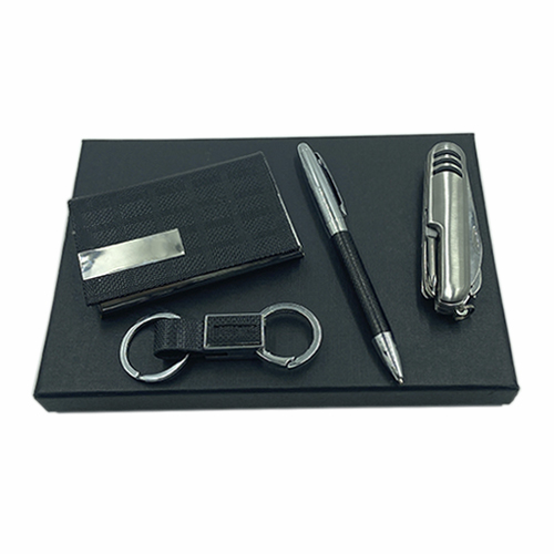 BOSS Set ejecutivo Incluye: llavero metálico, porta tarjetero, bolígrafo, navaja y estuche de regalo.