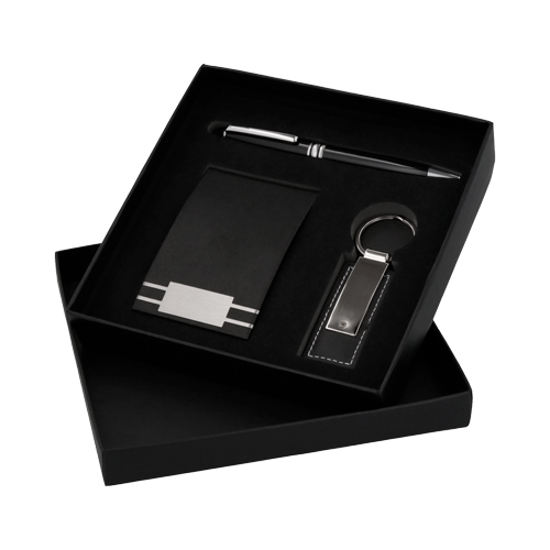 PAGE Set ejecutivo: Incluye llavero metálico y curpiel, tarjetero, bolígrafo metálico y estuche de regalo.