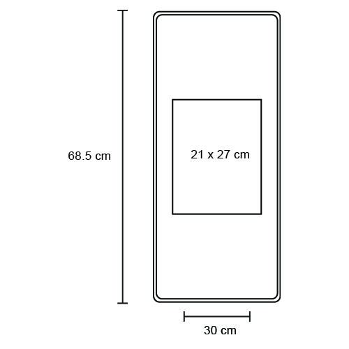 MEDIDAS: 68.50x30.00 IMPRESION: Serigrafía MED. EMPAQUE: 33.00x68.00x27.00 PESO EMPAQUE: 21.0 PIEZAS EMPAQUE: 50