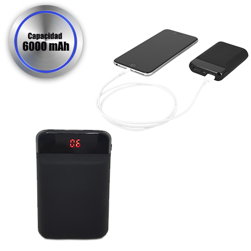 TEMPUS Batería portátil de acabado rubber y doble salida USB. Incluye cable micro USB para carga.