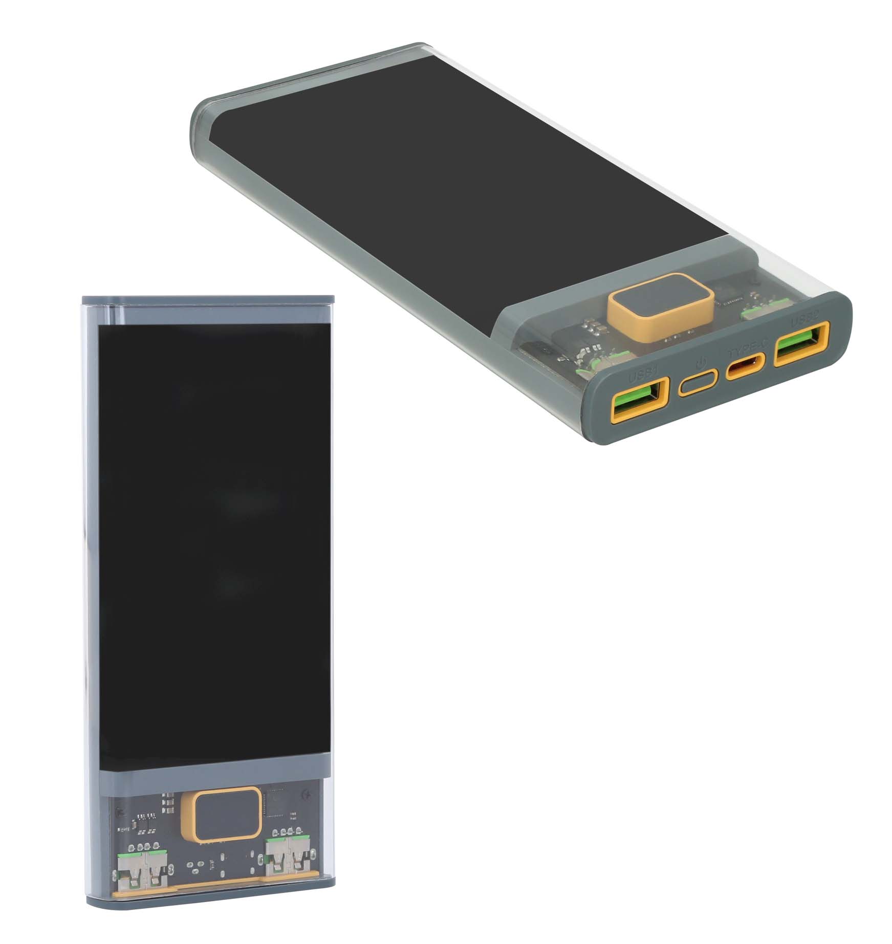 FAST Power Bank transparente de 10,000 mah con 2 entradas USB y 1 tipo C para carga rápida.