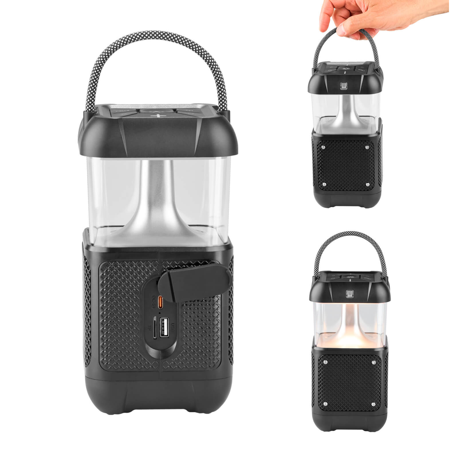 MARS Bocina Bluetooth portátil con luz cálida/fría y botones para ajustar los niveles de intensidad. Cuenta con lámpara con luz de emergencia, botón de encendido, radio FM, puerto USB y TF. Incluye cable de carga tipo C.