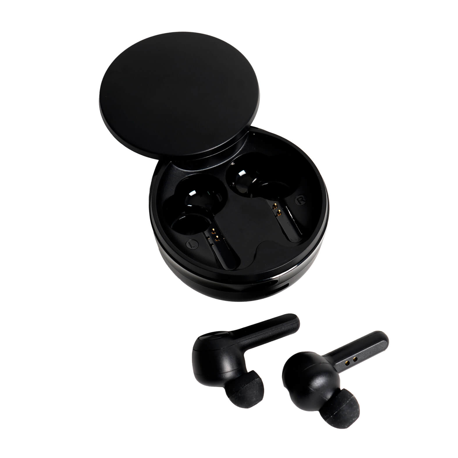 ROZ Audífonos inalámbricos con controles táctiles para adelantar/retroceder, pausar y reproducir con un solo toque. Su estuche cuenta con una tapa deslizable y centro de carga tipo C.
