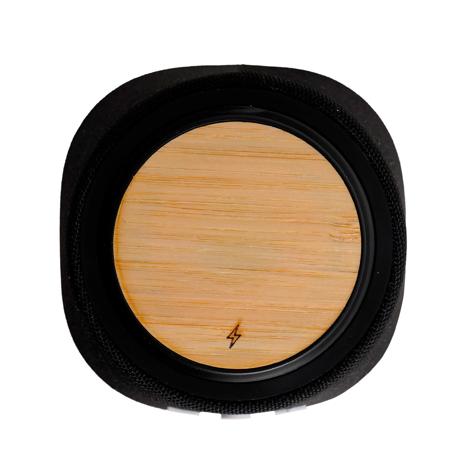 JAY Bocina con bluetooth con controles adelante/atrás, play/pausa y carga tipo C. Cuenta con brazo retráctil que sirve como cargador wireless.