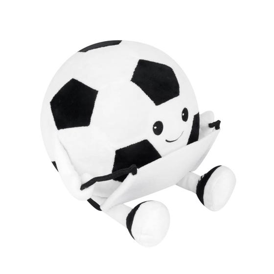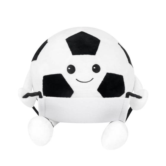 PELUCHE SOCCER - Incluye banderín de fieltro desmontable, perfecto para personalizar. Su diseño con ojos expresivos lo hace encantador para niños y adultos por igual.