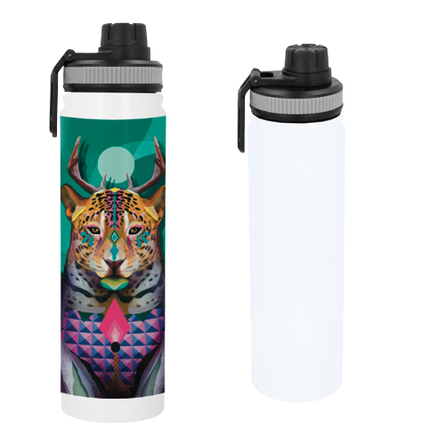 VINCENT Termo sublimable de acero inoxidable y doble pared insulado al vacío. Cuenta con tapa de rosca con asa de plástico para sujetarlo fácilmente.
