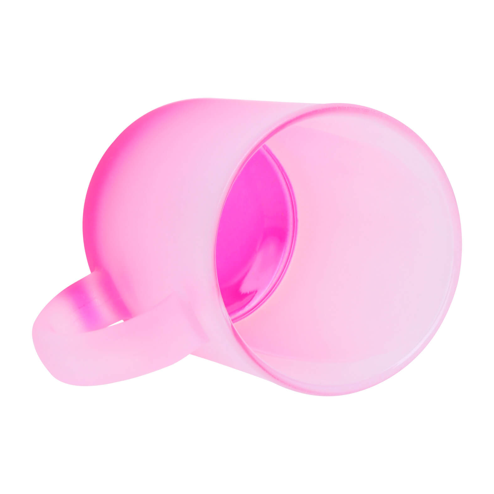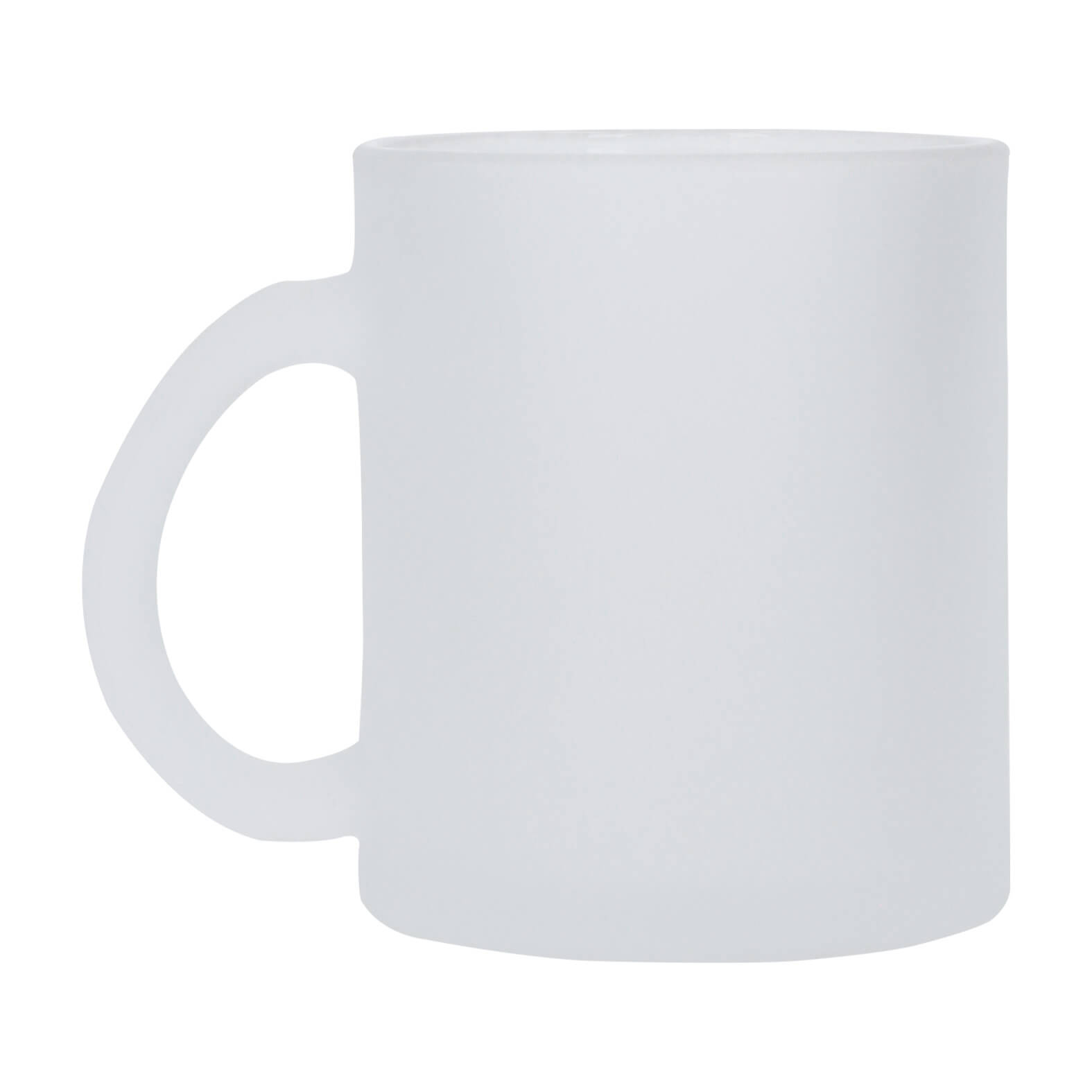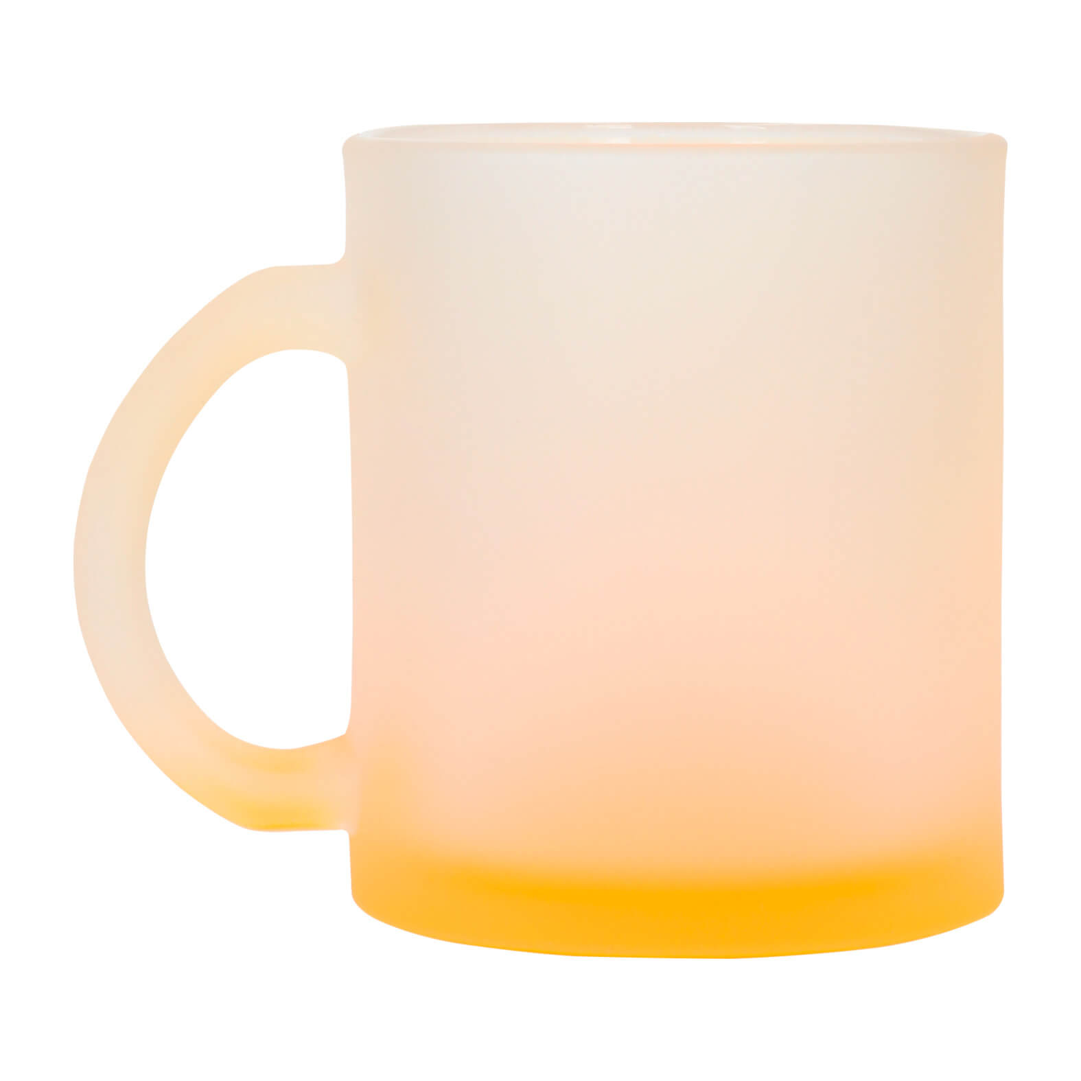 INDRA Taza de vidrio sublimable con acabado frost, degradado en la base y asa.