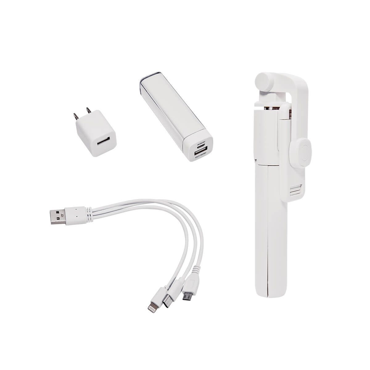 SET HIGH PRO - Incluye selfie stick inalámbrico con bluetooth y control remoto para accionar la cámara a distancia. Batería auxiliar de 2,200 mAh, cargador de pared, cable cargador USB 3 en 1 (micro USB, tipo C y lightning) y estuche.
