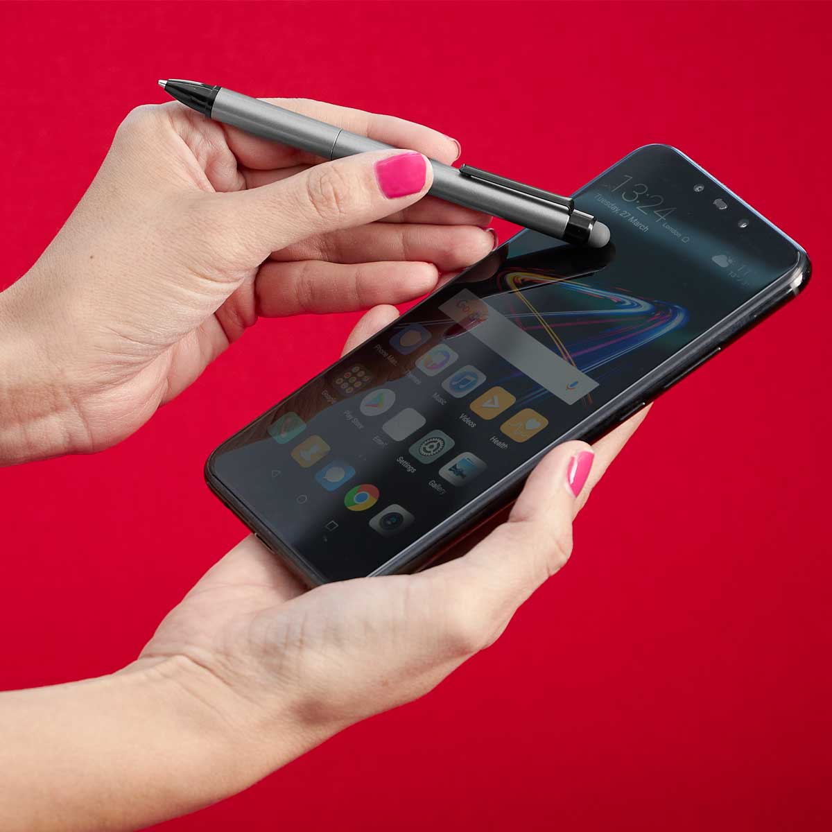 BOLÍGRAFO TROY - Bolígrafo con touch screen. Mecanismo twist. Incluye funda.