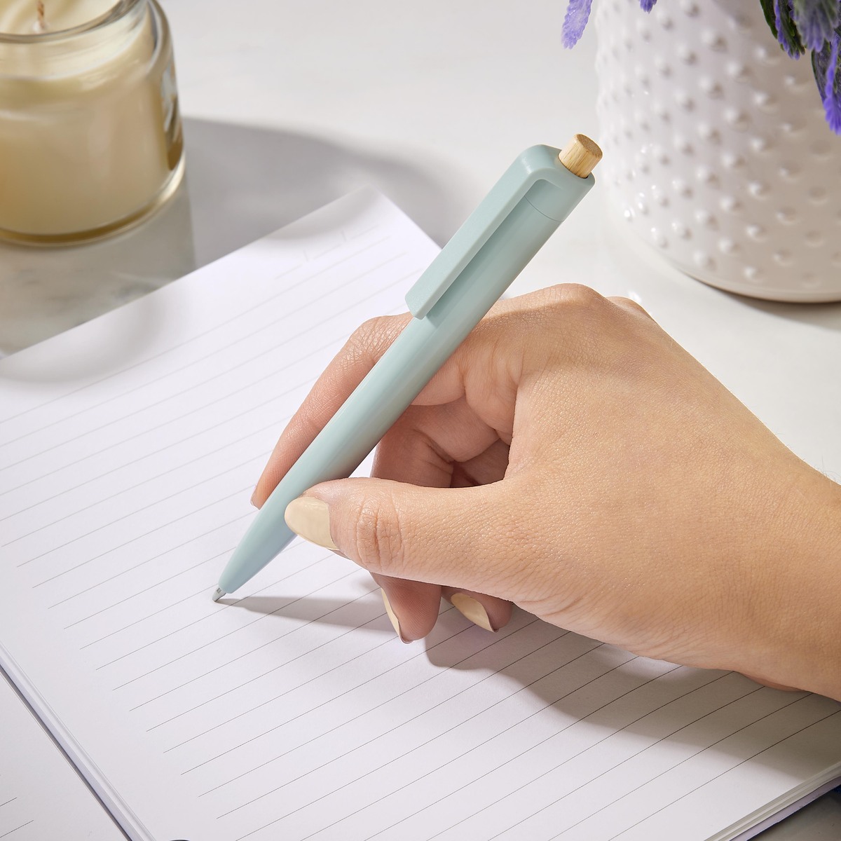 BOLÍGRAFO WENYU - Bolígrafo con botón de madera que añade un toque ecológico. Mecanismo pulsador.