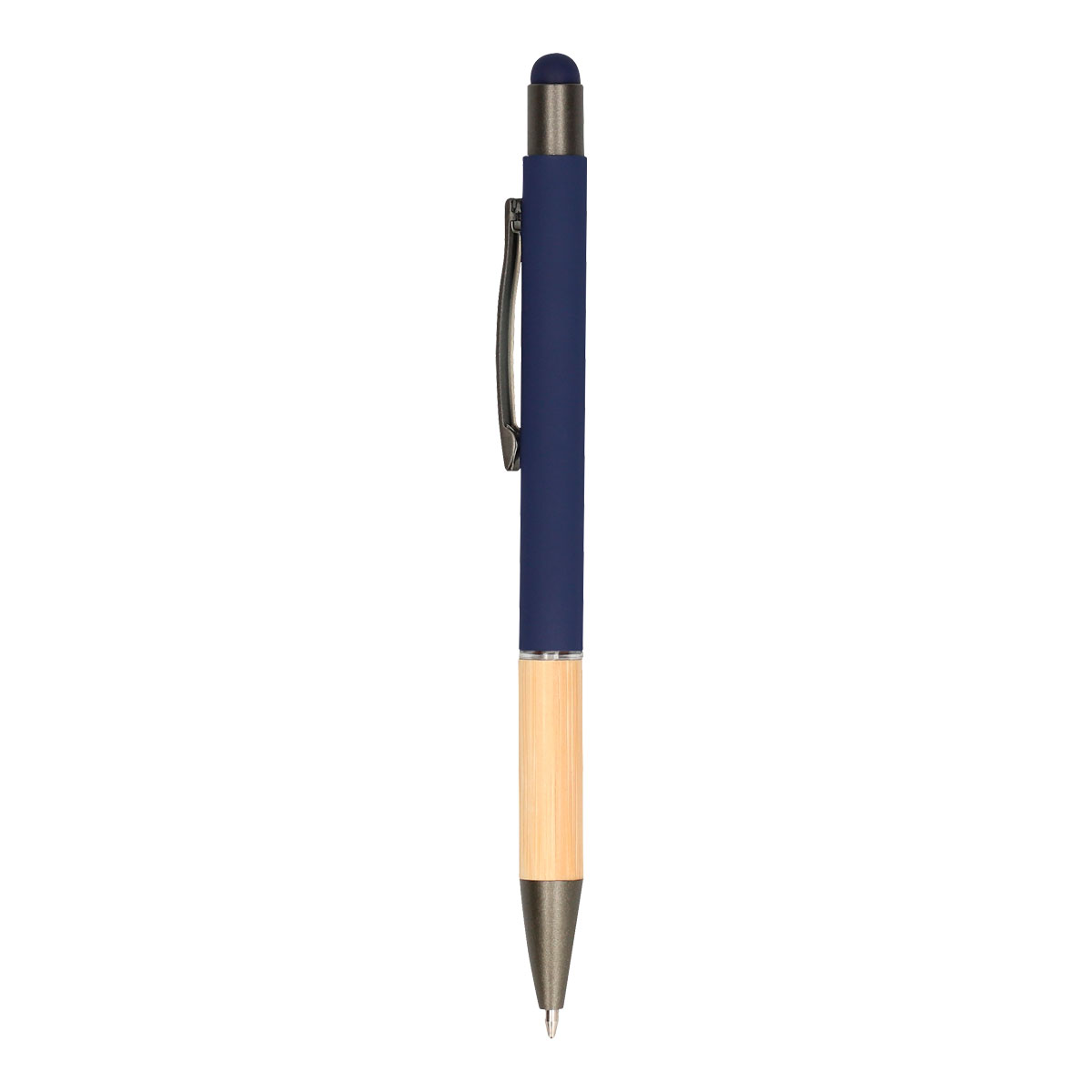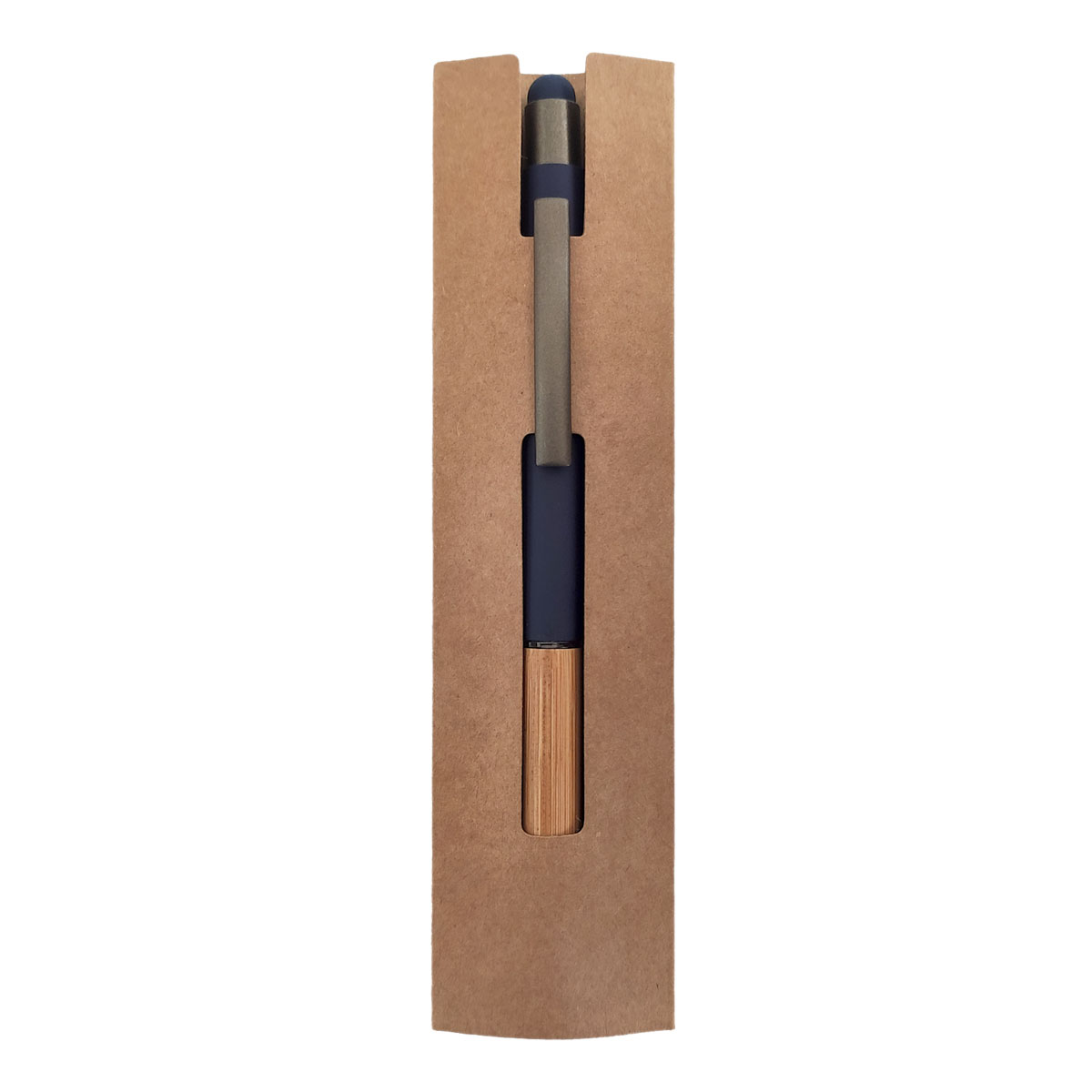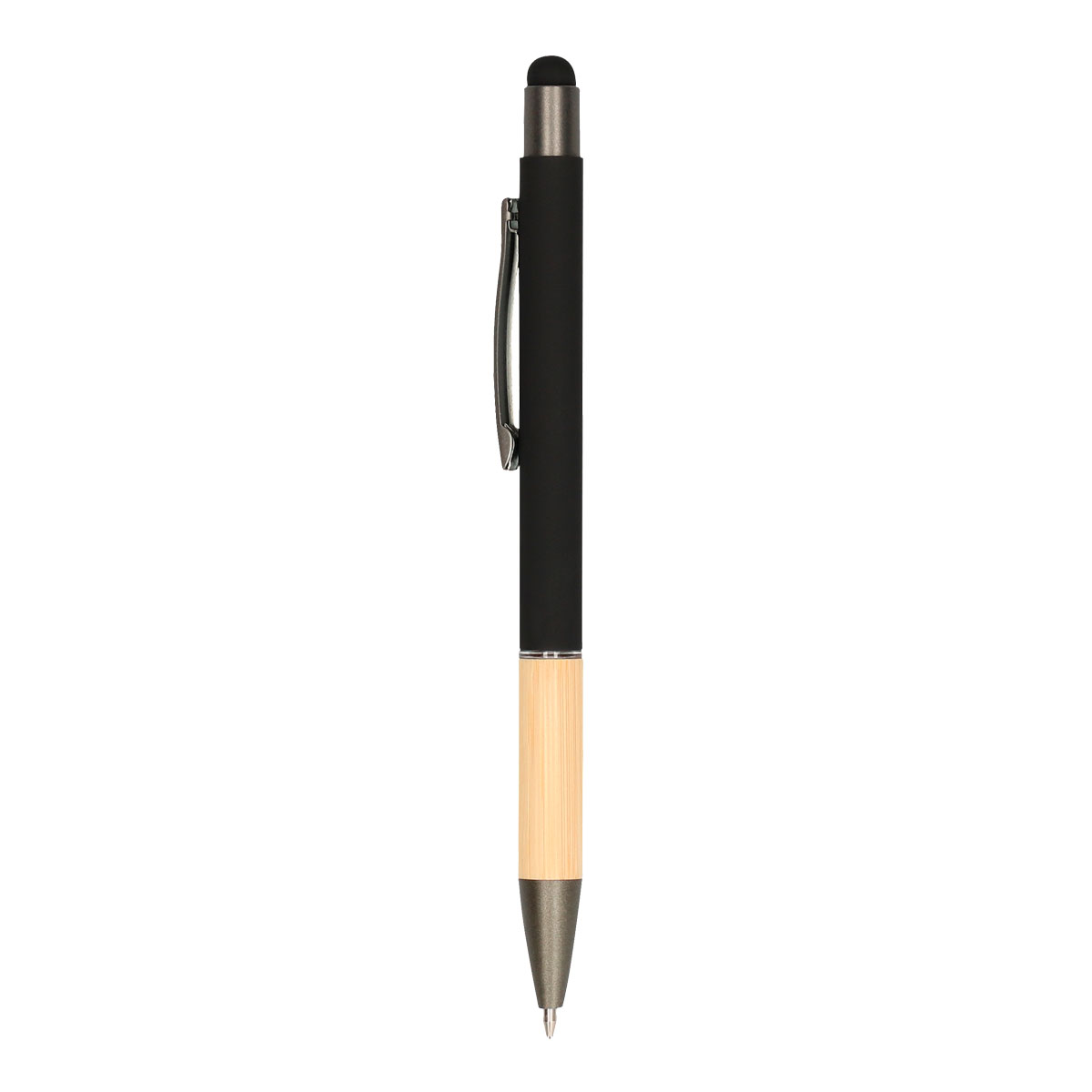 BOLÍGRAFO BAO - Bolígrafo con touch screen y grip de bambú. Terminado rubber. Mecanismo pulsador. Incluye funda.