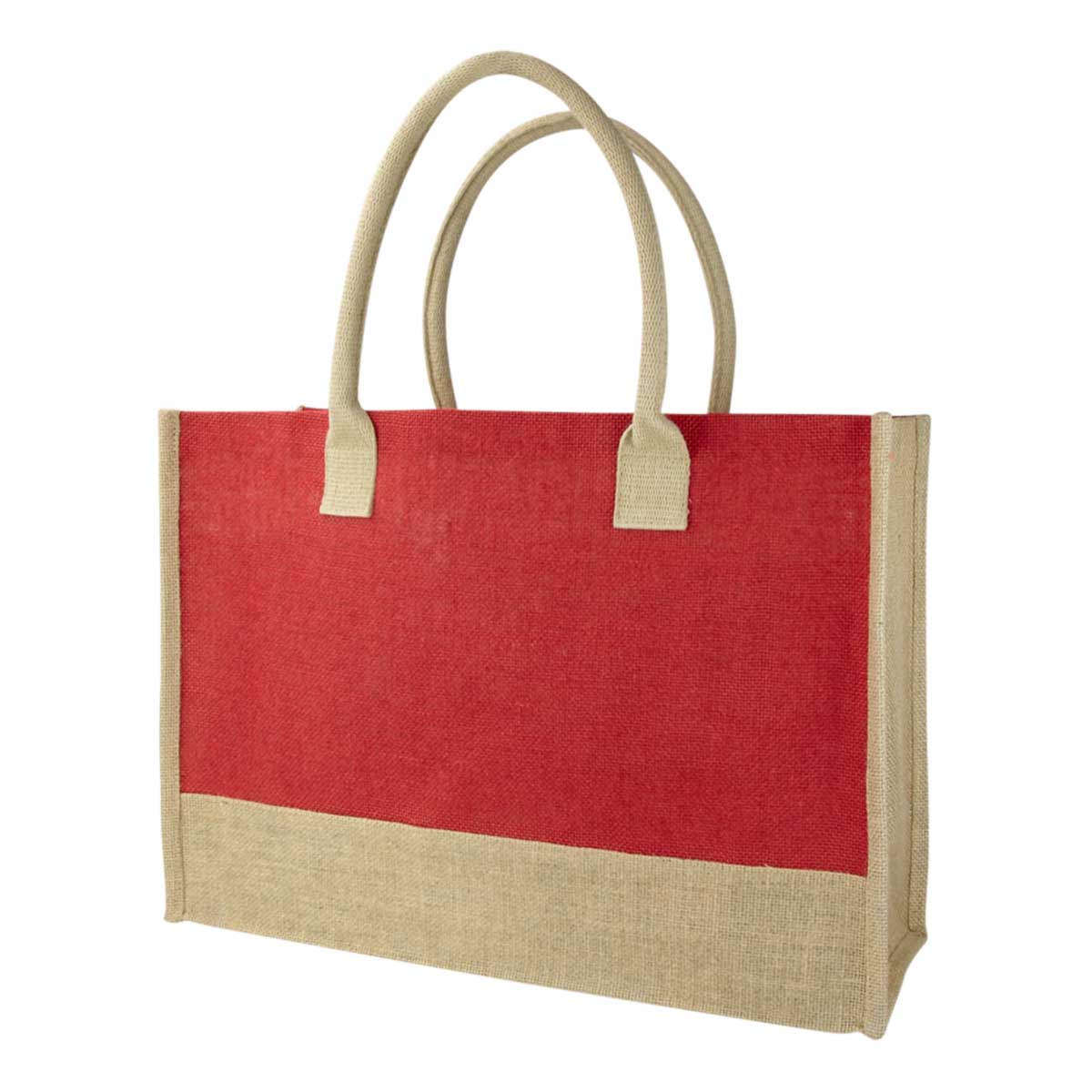 MATERIAL: Yute MEDIDAS: 46 x 32 x 17 cm IMPRESION: Serigrafía MED. EMPAQUE: 51 x 38 x 46 cm PESO EMPAQUE: 7.38 Kg PIEZAS EMPAQUE: 50