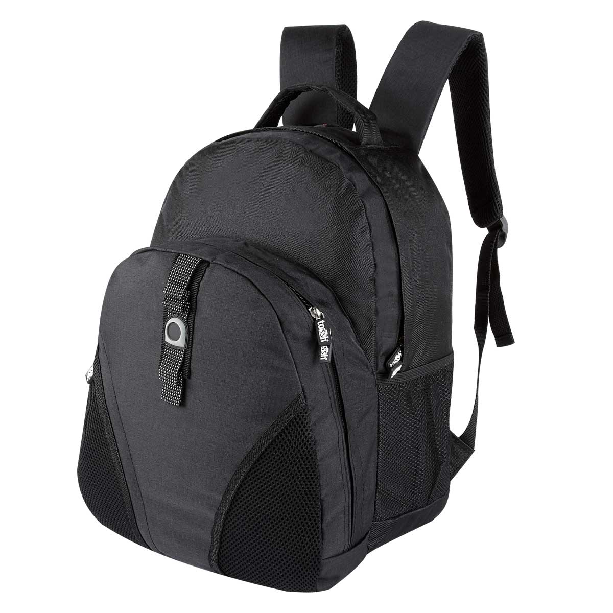 MOCHILA VICTORY - Bolsa principal y bolsa frontal con cierre, organizador de documentos y gancho para llaves, aditamento especial para audífonos, bolsas laterales de red, tirantes acolchados y ajustables. Espalda acojinada. Cuenta con asa de agarre superior acojinada.