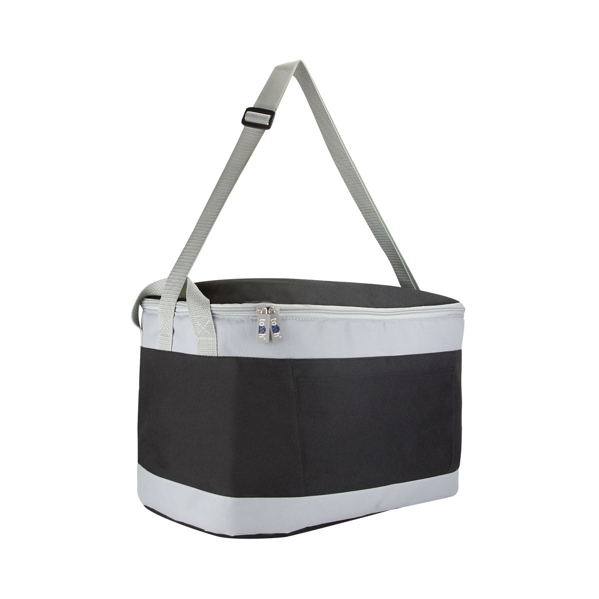 HIELERA BALTY - Interior plastificado impermeable. Bolsa principal con cierre y bolsillo frontal. Incluye asa y correa ajustable. Capacidad para 26 latas.