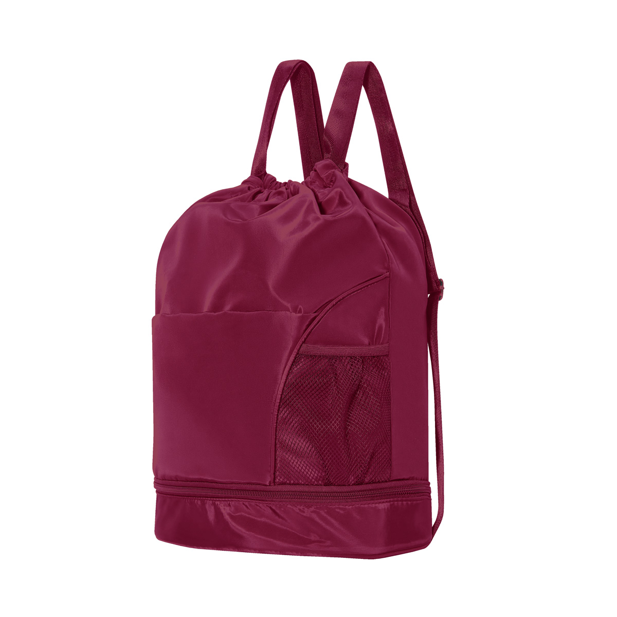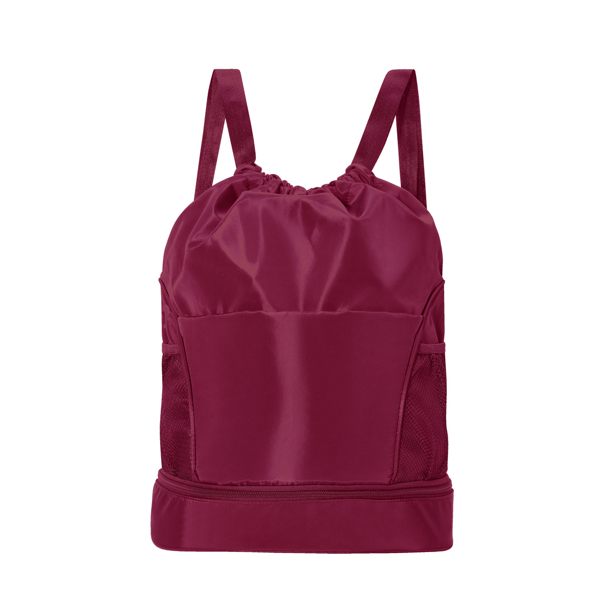 BOLSA-MOCHILA TASKA - Bolsa con cierre de jareta. Compartimento principal con separador a prueba de agua y bolsillo con cierre. Bolsillo frontal con cierre y dos mallas laterales. En la base compartimento con cierre para zapatos o accesorios. Incluye asas ajustables con broche metálico.