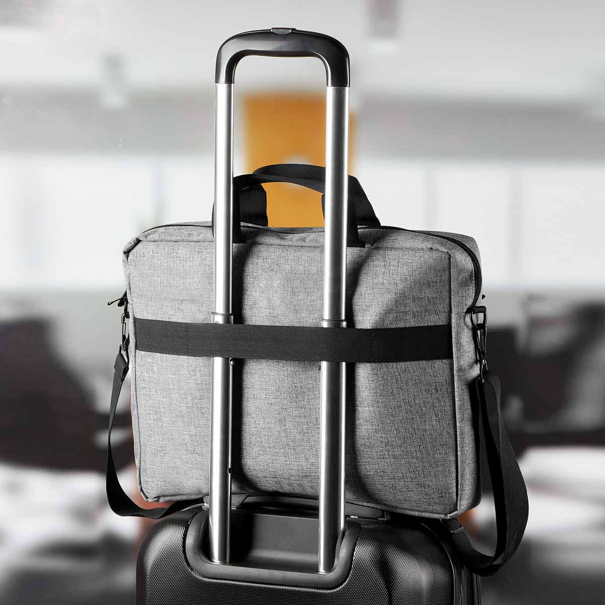 PORTAFOLIO AZAT - Bolsa principal con cierre y espacio para laptop de 15", organizador y bolsa interna con cierre, 2 bolsas frontales con cierre y aditamento especial trasero para colocar en trolley. Incluye correa ajustable y desmontable. Asas de agarre superior.
