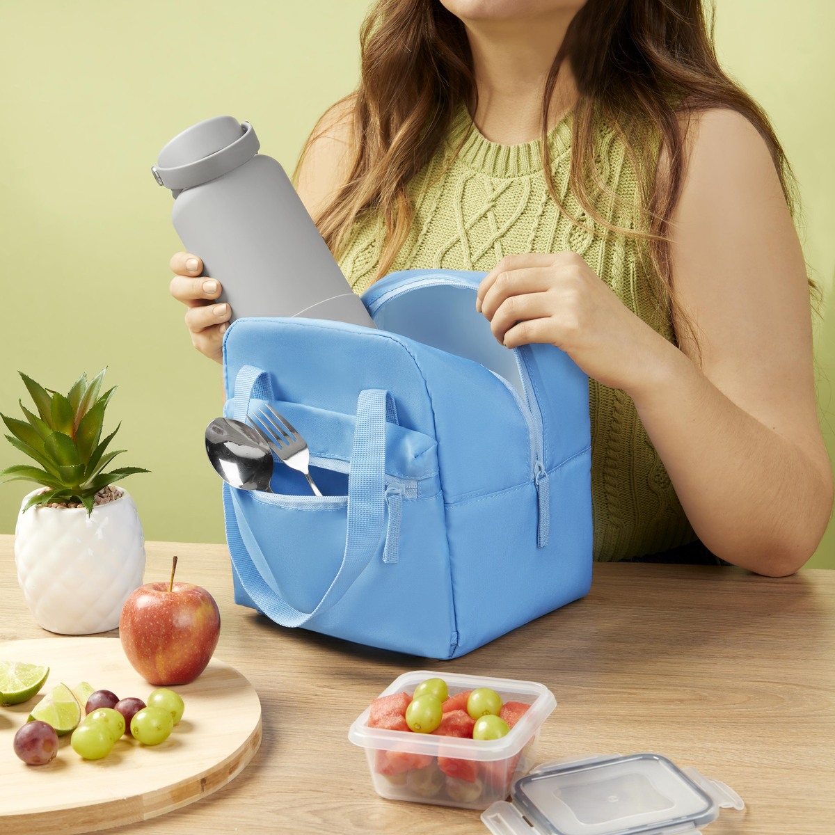 LONCHERA MALIIT - Lonchera fabricada en poliéster resistente y duradero, cuenta con un forro plastificado que facilita su limpieza. El compartimento principal, tiene un cierre y un bolsillo frontal para llevar objetos pequeños como, cubiertos, snacks o utensilios. Sus dos asas superiores facilitan su traslado y se pueden unir con un práctico broche para mayor comodidad. Con una capacidad para 9 latas, esta lonchera es ideal para llevar tus comidas y bebidas favoritas de manera segura y organizada.