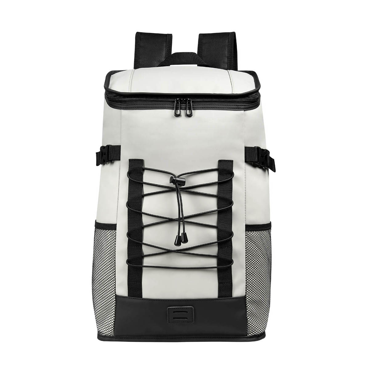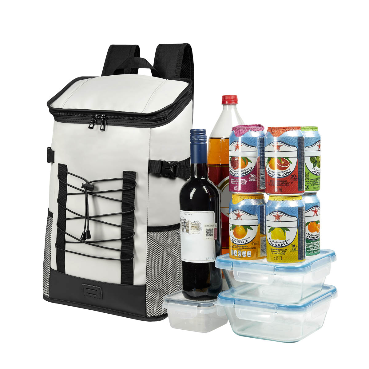 MOCHILA-HIELERA YUKÓN - Hielera con función de mochila, con interior plastificado impermeable. Espacioso compartimento principal con cierre, pequeño bolsillo con cierre en la parte superior y 2 bolsillos laterales de red. Al frente, incluye elástico ajustable para llevar accesorios adicionales. En la parte posterior cuenta con asas de mochila ajustables, espalda acojinada para mayor comodidad y banda que facilita su transporte en trolley. Ideal para una tarde en la playa, pesca o senderismo. Capacidad para 24 latas.