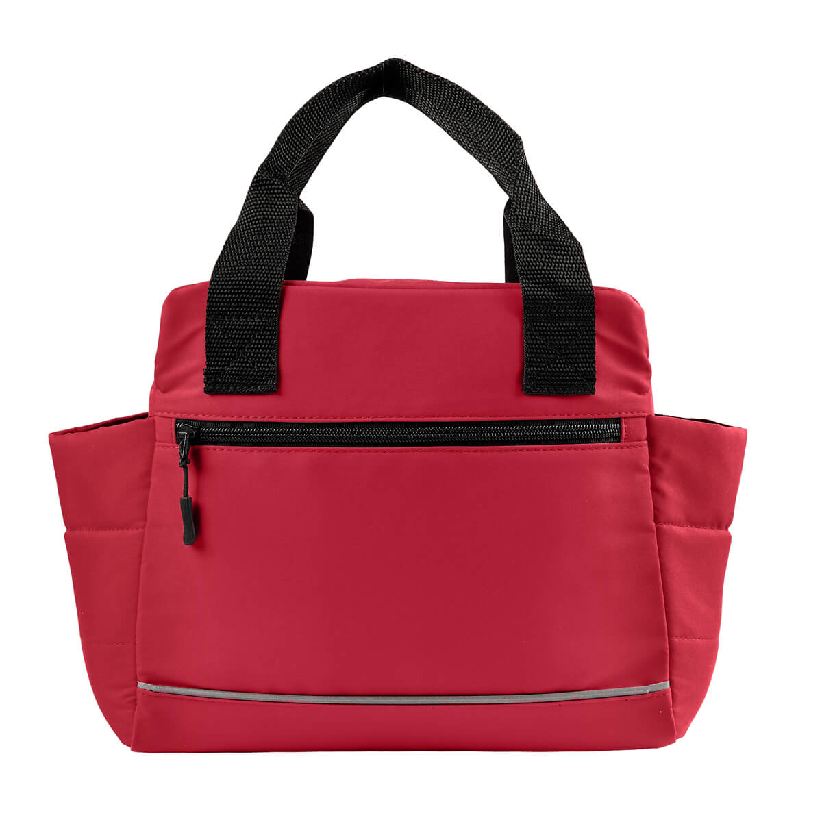 LONCHERA NUAN - Lonchera con interior plastificado. Compartimento principal con cierre, dos bolsillos laterales y un bolsillo frontal también con cierre, ideal para llevar contigo pequeños snacks. Adicional, agregar un detalle reflejante en la parte frontal, lo que aporta un toque de diseño. Ideal para escuela u oficina, lleva tus alimentos con estilo y de forma segura. Capacidad 12 latas.