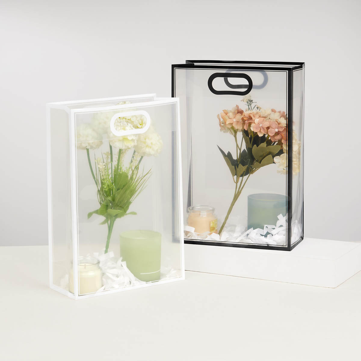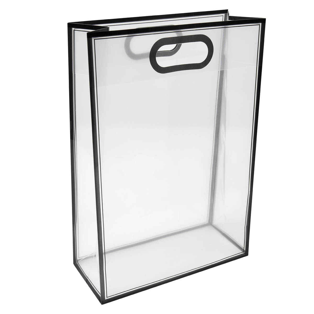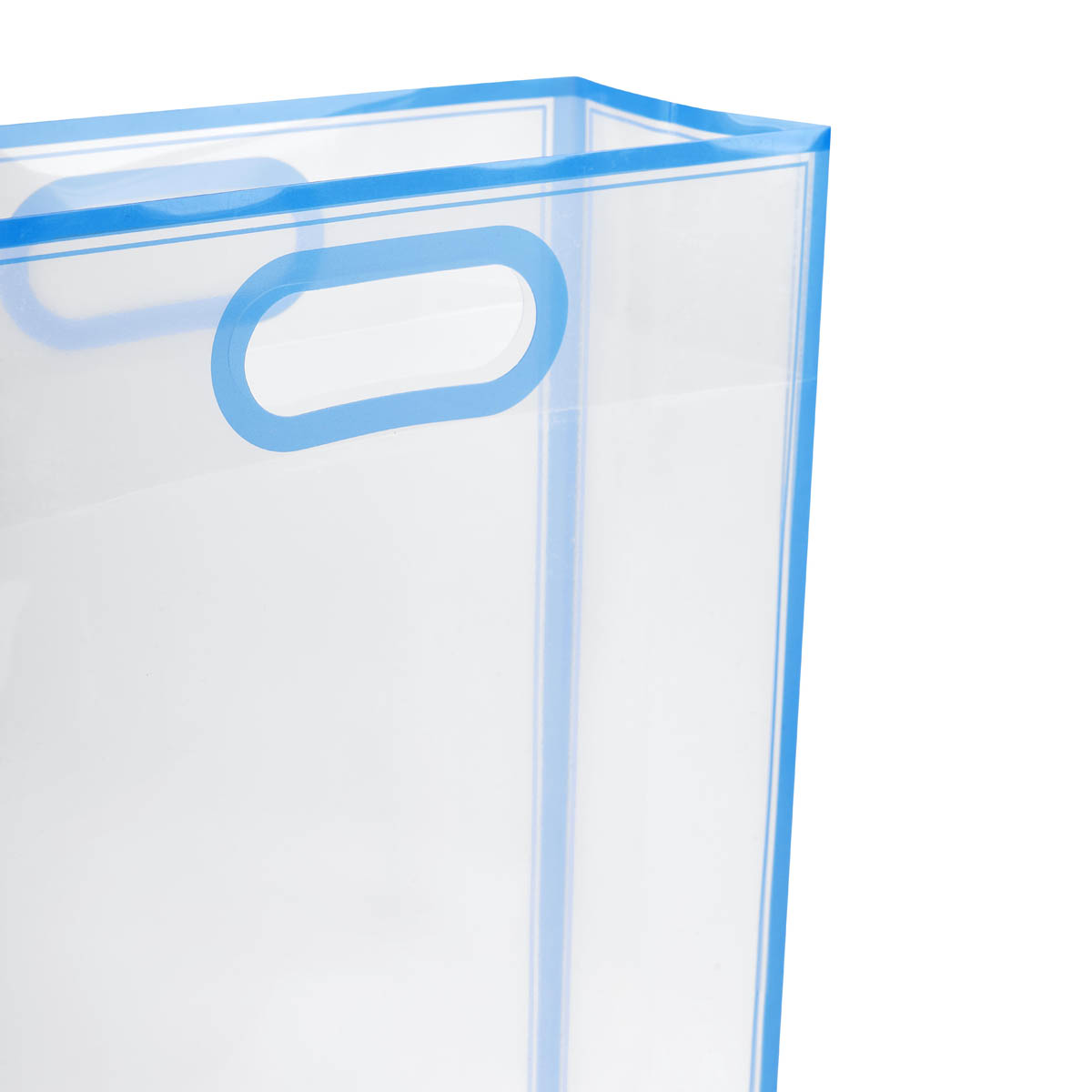BOLSA GIFT - Bolsa de PVC con fuelle. Su diseño transparente con bordes de color la hace ideal para crear tus propios sets de regalo. Su asa está diseñada para llevarla cómodamente con una sola mano. Perfecta para cualquier ocasión especial.