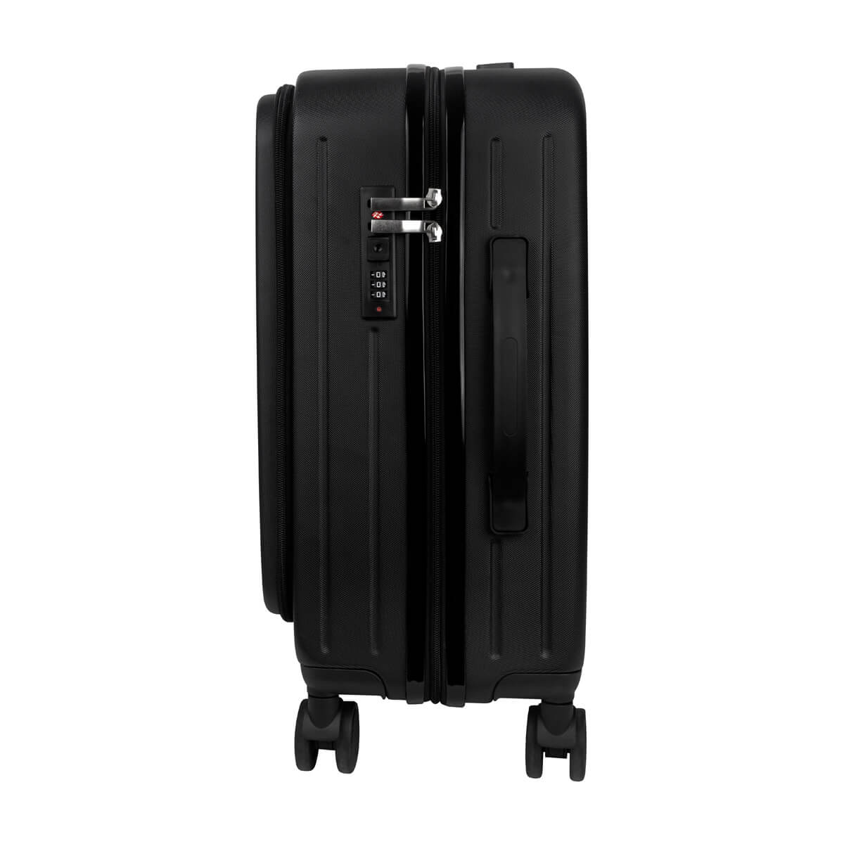 MALETA VIAGGIO - Maleta carry-on con dimensiones aprobadas para cabina. Ideal para viajes cortos o de negocios. Compartimento frontal para lap top que permite un fácil acceso, sin necesidad de abrir toda la maleta. Su innovador diseño, Incluye un porta bebidas plegable en la parte trasera y un práctico gancho portabolsas en la parte lateral, ideal para las compras de último momento. Cuenta también con un soporte para smartphone integrado en el asa del trolley, para un práctico manejo de dispositivos portátiles. Incluye candado de combinación para mayor seguridad. Cuenta con cuatro ruedas de giro suave y asa trolley retráctil con dos niveles ajustables, que facilitan su adecuada movilización.