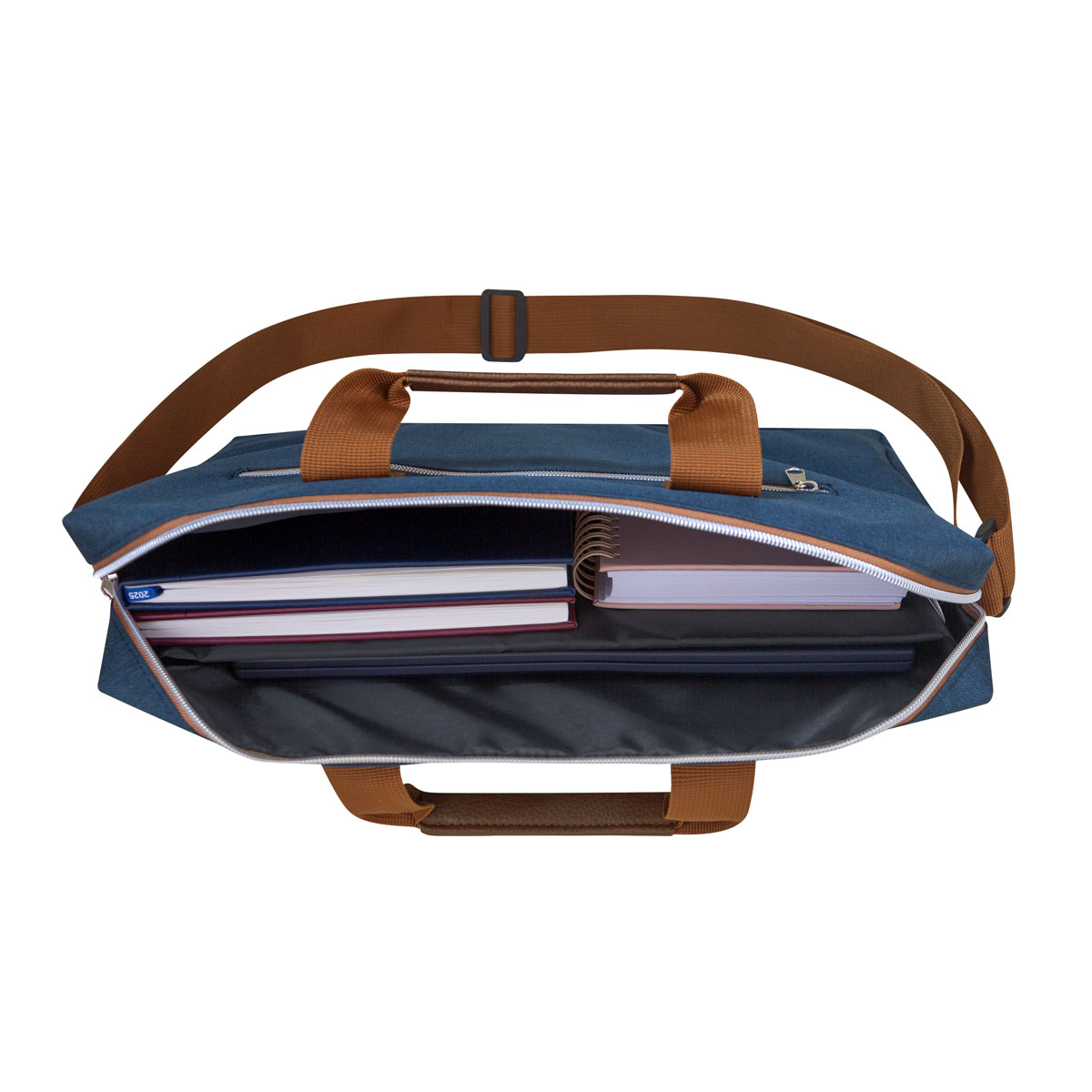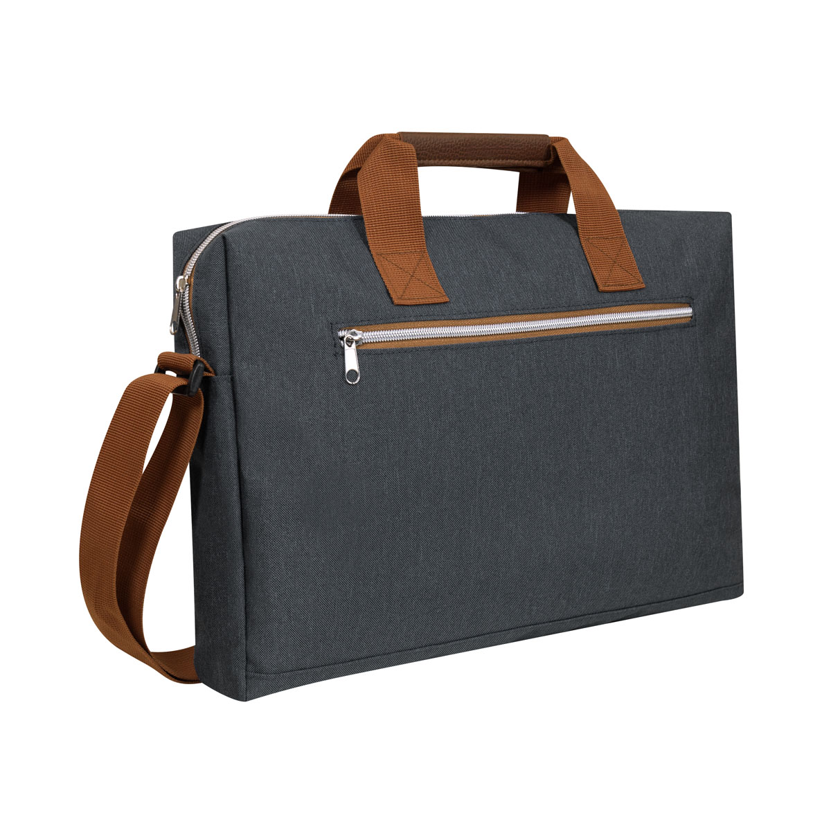 PORTAFOLIO TILAUS - Portafolio con diseño compacto y ligero. Sus asas con detalles de curpiel, proporcionan un agarre cómodo y sofisticado. La bolsa principal con cierre tiene un compartimento para laptop de hasta 15" y un espacio adicional específico para tus pertenencias. La bolsa frontal es perfecta para artículos más pequeños. Además, la banda en la parte posterior facilita el transporte en trolley, brindándole aun mayor versatilidad y comodidad para su desplazamiento.