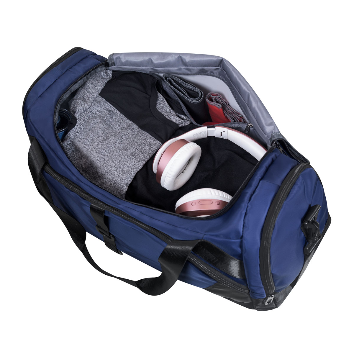MALETA ARIKETA - Maleta ideal para tus artículos deportivos. Cuenta con bolsillo frontal con cierre, el cual, permite organizar las pertenencias de forma eficiente. Incluye al centro un par de anillos de plástico ideales para guardar artículos pequeños esenciales. Su bolsillo lateral ofrece un acceso rápido a sus artículos. Además, cuenta con una práctica zapatera que permite mantener el calzado separado y protegido. Las asas superiores se ajustan a la altura deseada. El asa de mano incluye un protector con velcro, de esta manera podrá llevarla cómodamente. El interior de la maleta incluye un practico bolsillo impermeable, en el que podrá resguardar prendas húmedas, protegiendo el resto de sus artículos.