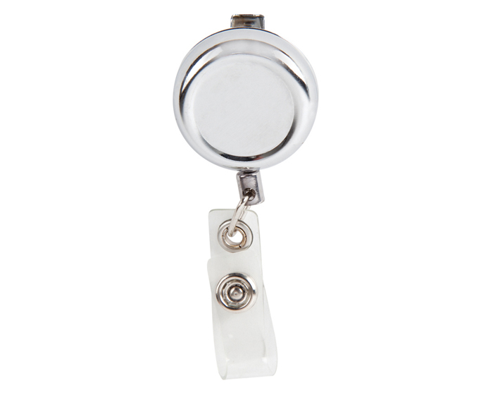 ADY - Portagafete metálico con hilo de metal y pinza de caimán. No incluye etiqueta blanca.