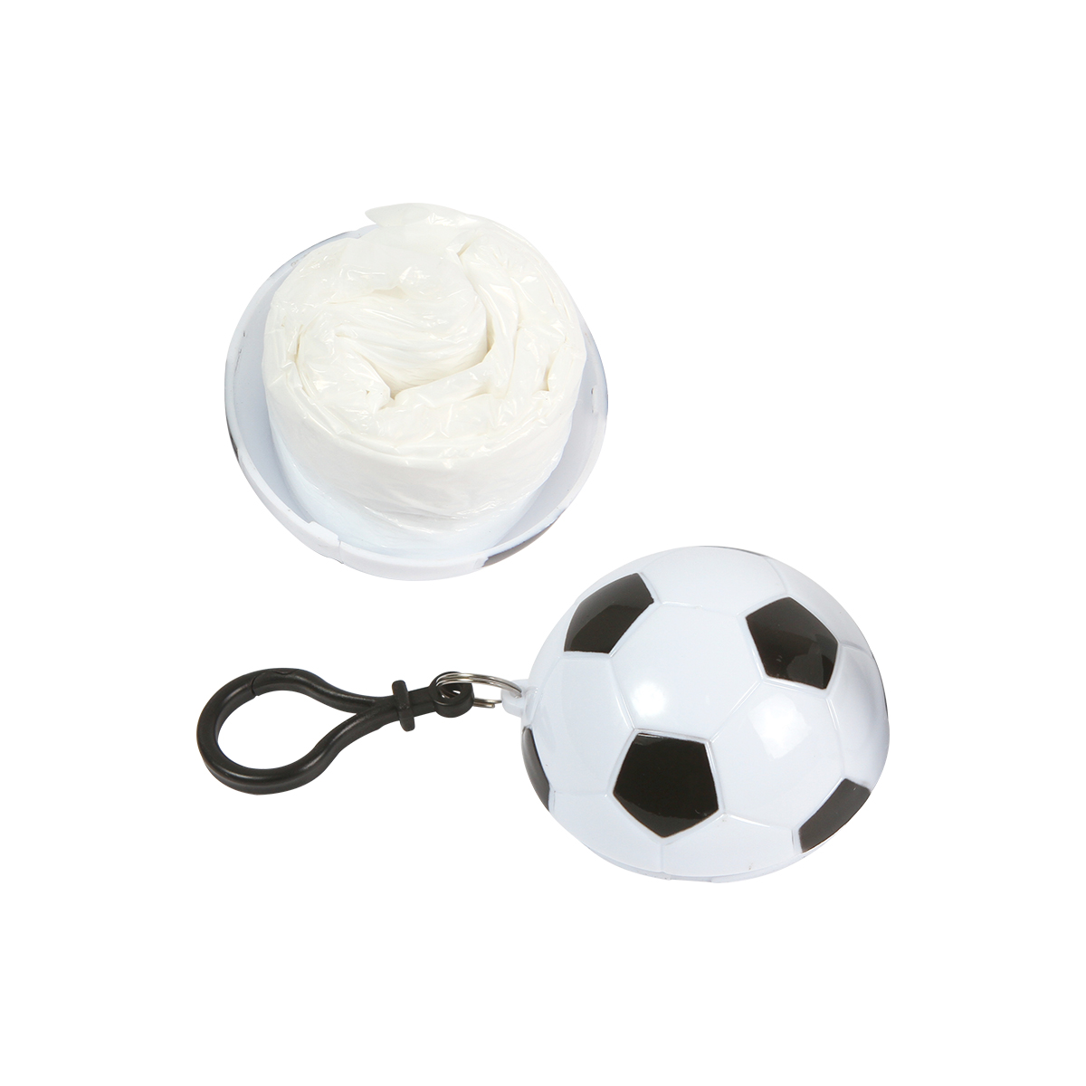 Impermeable Cambridge. - Impermeable unitalla es la solución perfecta para mantenerte seco en cualquier momento. Fabricado en polietileno ligero y resistente al agua, se pliega fácilmente y se guarda dentro de un estuche compacto con diseño de balón de fútbol, fabricado en poliestireno duradero. Incluye un gancho para transportarlo cómodamente en tu mochila, llavero o cinturón, lo que lo hace ideal para partidos, conciertos, viajes o el día a día. Un accesorio indispensable para los fanáticos del fútbol y la practicidad. ¡Llévalo contigo y que la lluvia no detenga tu juego!