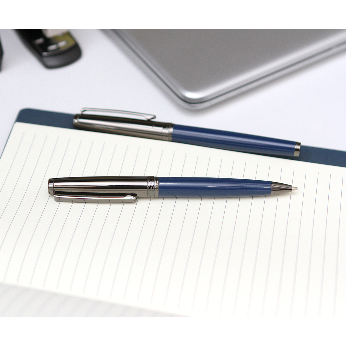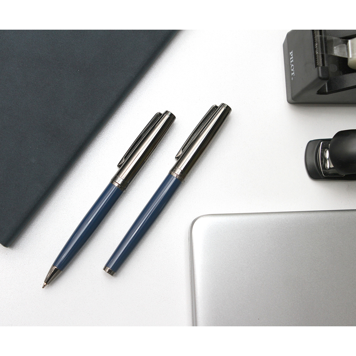 Set de bolígrafos Aranjuez. - Set de bolígrafos ball pen y roller pen con barril lacado, punta y clip metalicos en estuche de cartón. Tinta de escritura negra.