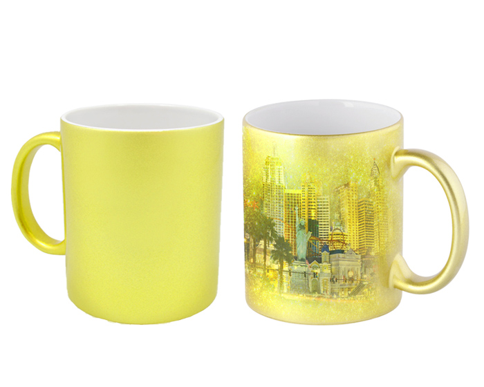 CAMEL - Tarro en color dorado de sublimación. CAP. 325 ml. (11 OZ). Temperatura y tiempo sugeridos para sublimar: 195 grados / 40 seg. Venta en múltiplos de 12.