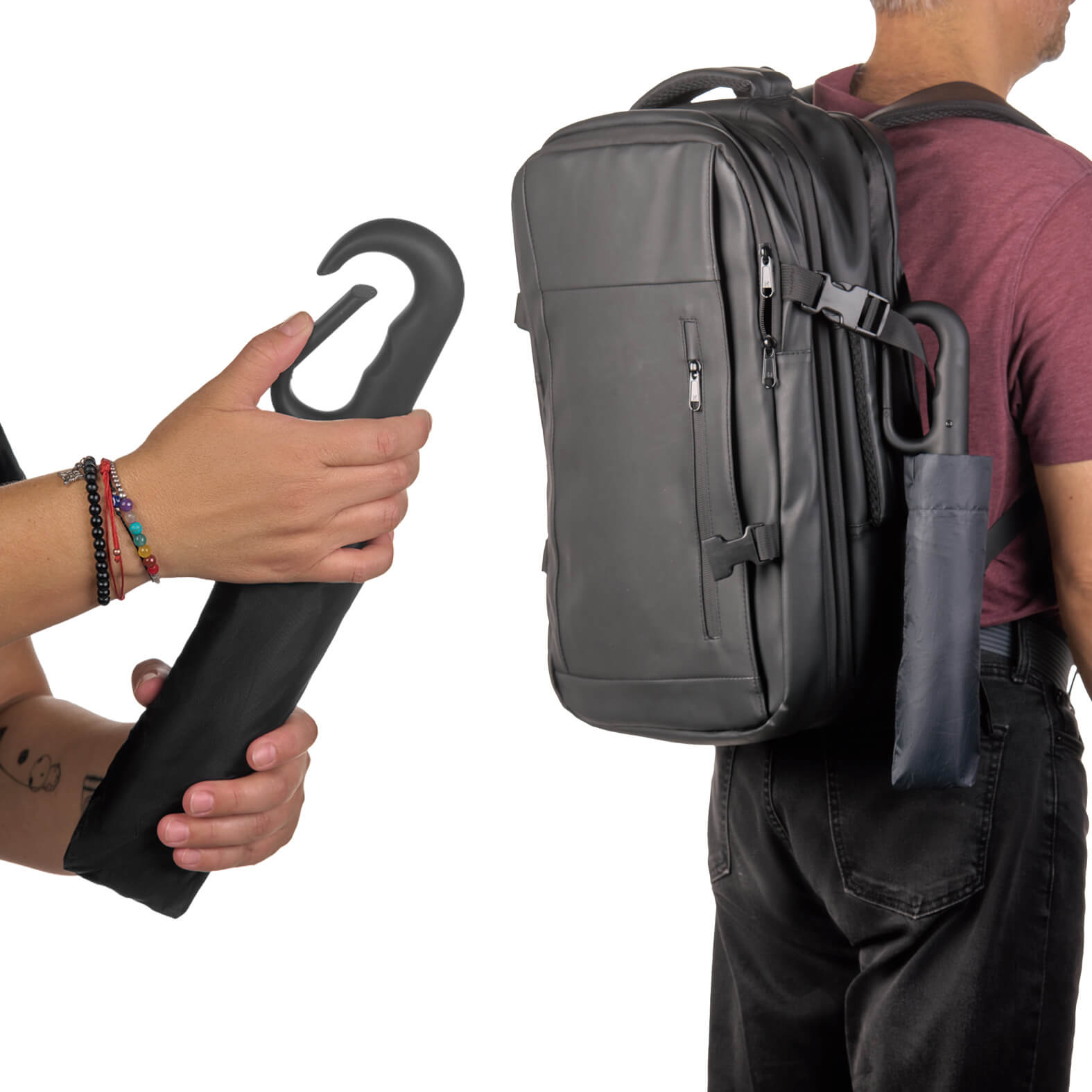 ROSBI Paraguas de bolsillo con sistema de apertura y cierre automático, 10 gajos, broche de velcro, mango con acabado rubber y gancho para bolsas. Incluye funda.