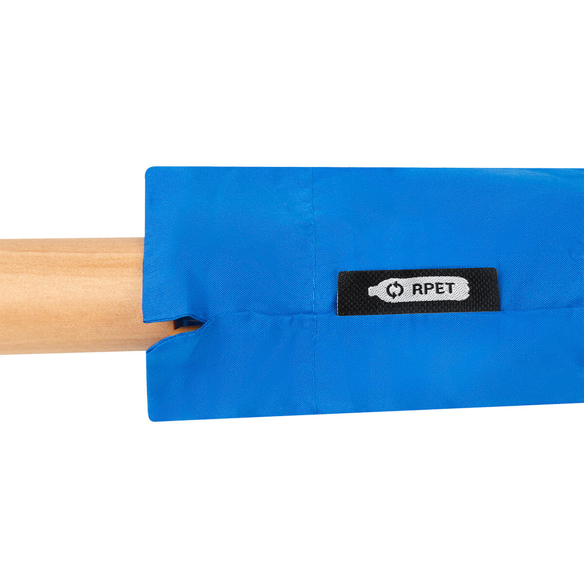 PARAGUAS NUA - Paraguas de 8 paneles con apertura automática. fabricado en plástico reciclado (RPET). Cuenta con mango y punteras de madera. Incluye funda protectora.