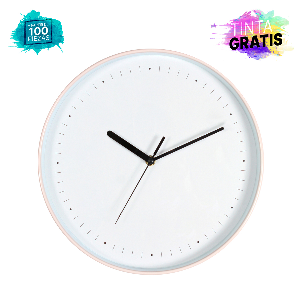 Reloj Cesis. - Reloj de pared con marco de PP en colores pastel, con carátula blanca y manecillas negras. Incluye 1 batería AA y caja de cartón individual. Cuenta con un diseño minimalista.