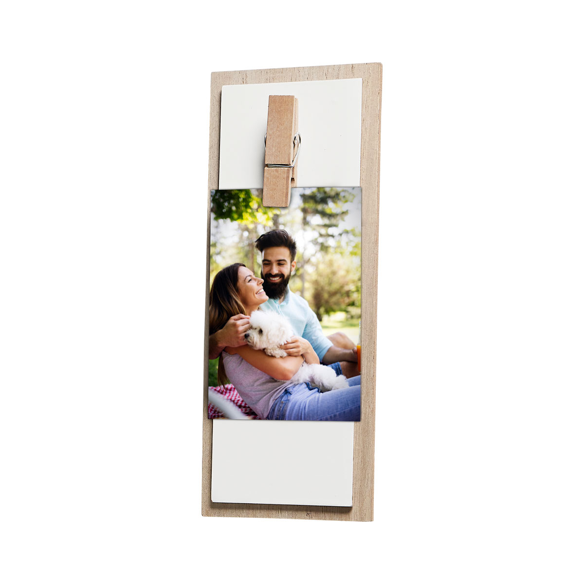 PORTARRETRATO KROMERIZ - Portarretrato con sujetador para colgar en la pared. Posición vertical con gancho para sujetar foto de 10 x 15 cm.