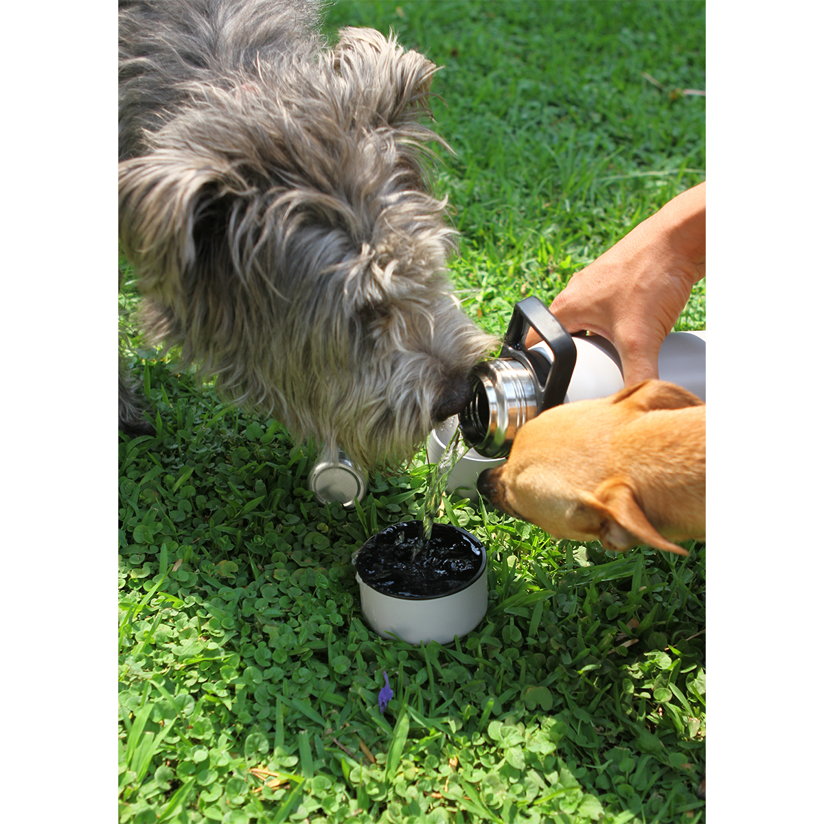 Botella Malta. - Botella doble pared para mascota fabricada en acero inoxidable 201 y 304. Con base extraíble para servir comida o agua. Incluye caja individual.