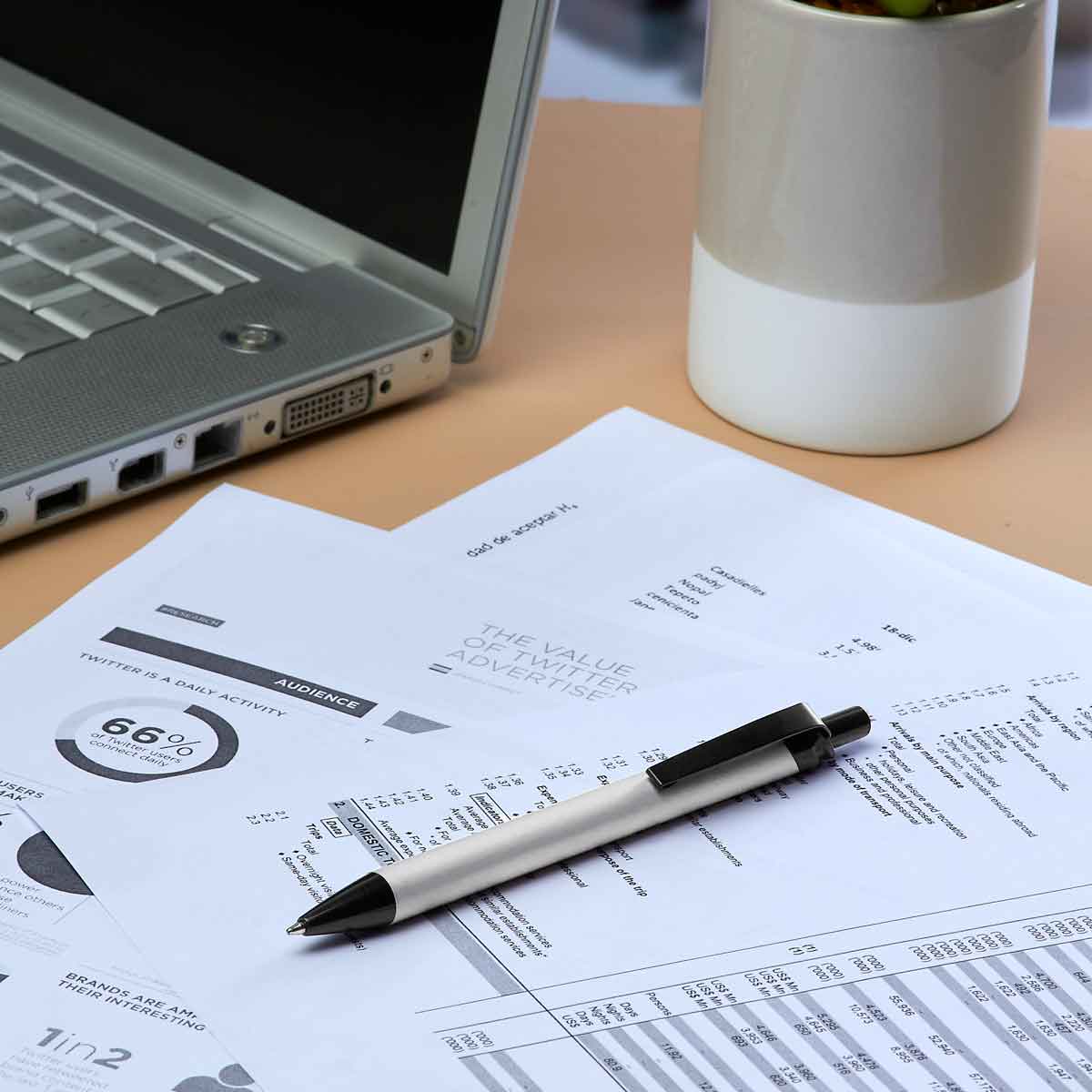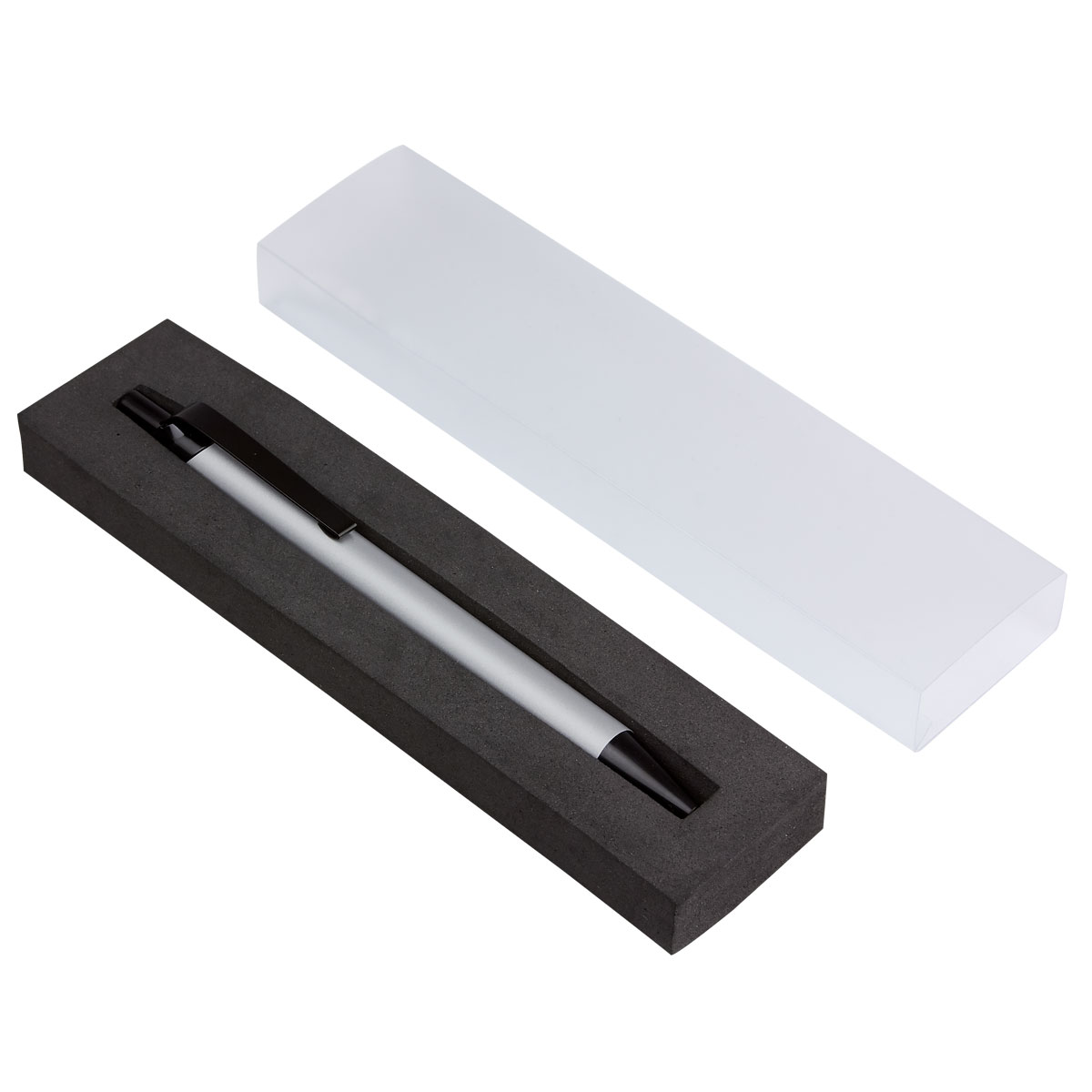 BOLÍGRAFO "PINTACS" Cuerpo metálico plata mate. En la parte superior color neg...