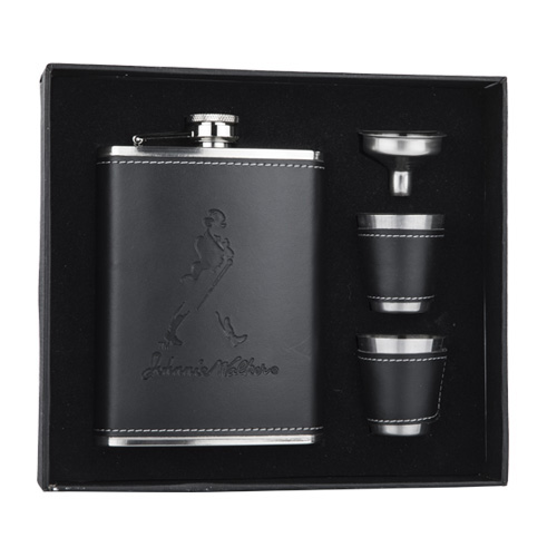 LYON Set de licorera que incluye 2 vasos metálicos, embudo y caja de regalo.