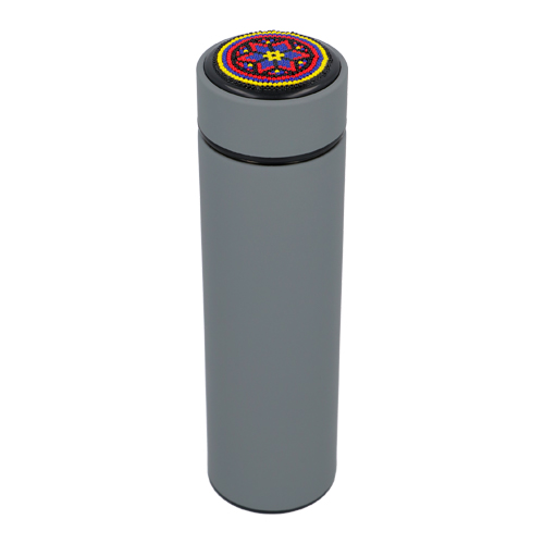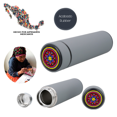 DIEGO Termo de acero inoxidable con doble pared aislada al vacío e infusor metálico, con técnica huichol en chaquira. Cada pieza está elaborada a mano con 800 chaquiras colocadas una a una por artesanos de Jalisco. Con cada compra apoyas el trabajo que representa el sustento económico de estas familias artesanas.