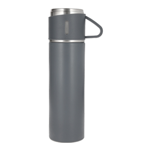 TURCO Termo con doble pared de acero inoxidable insulado al vacío. Acabado rugoso y tapa de rosca con asa que se utiliza como taza.