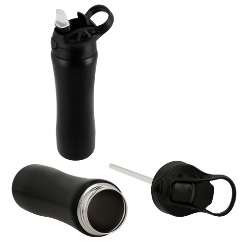 JAGUAR Cilindro de acero inoxidable con tapa enroscable, boquilla abatible, popote y agarradera.