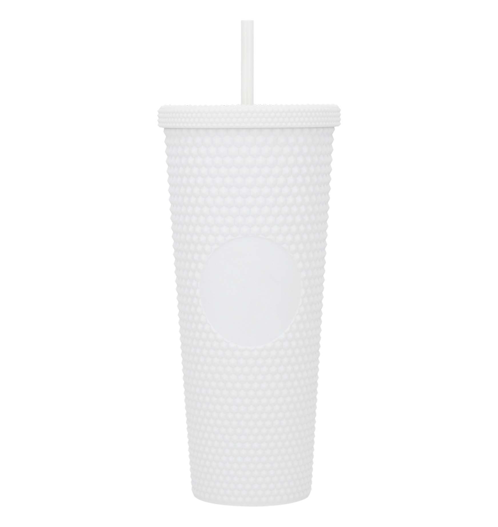 MATE Vaso con doble pared de plástico, textura, tapa enroscable y popote incluido.