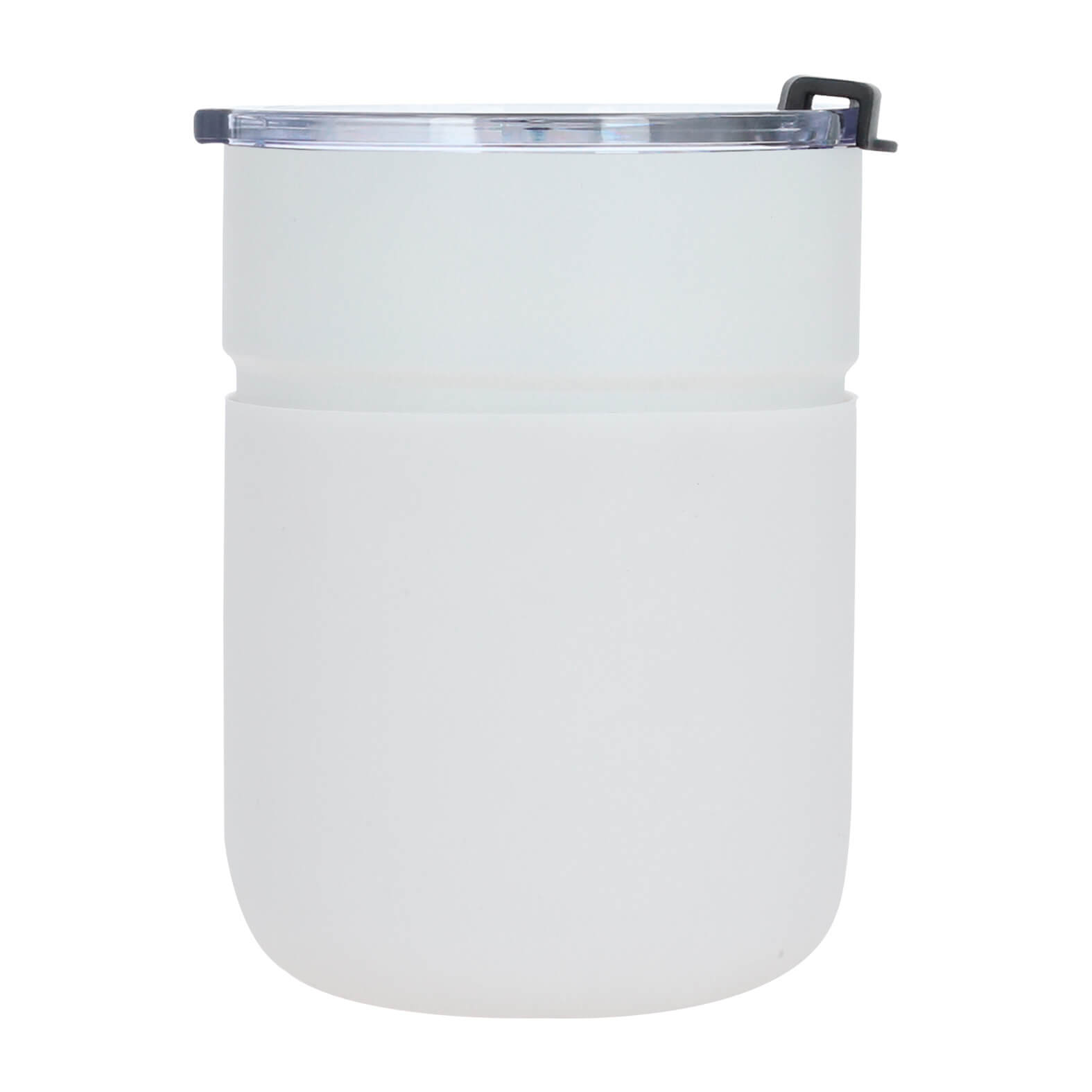 TIR Termo con doble pared de acero inoxidable, insulado al vacío, acabado rugoso, con manga de silicón y tapa de cierre a presión.