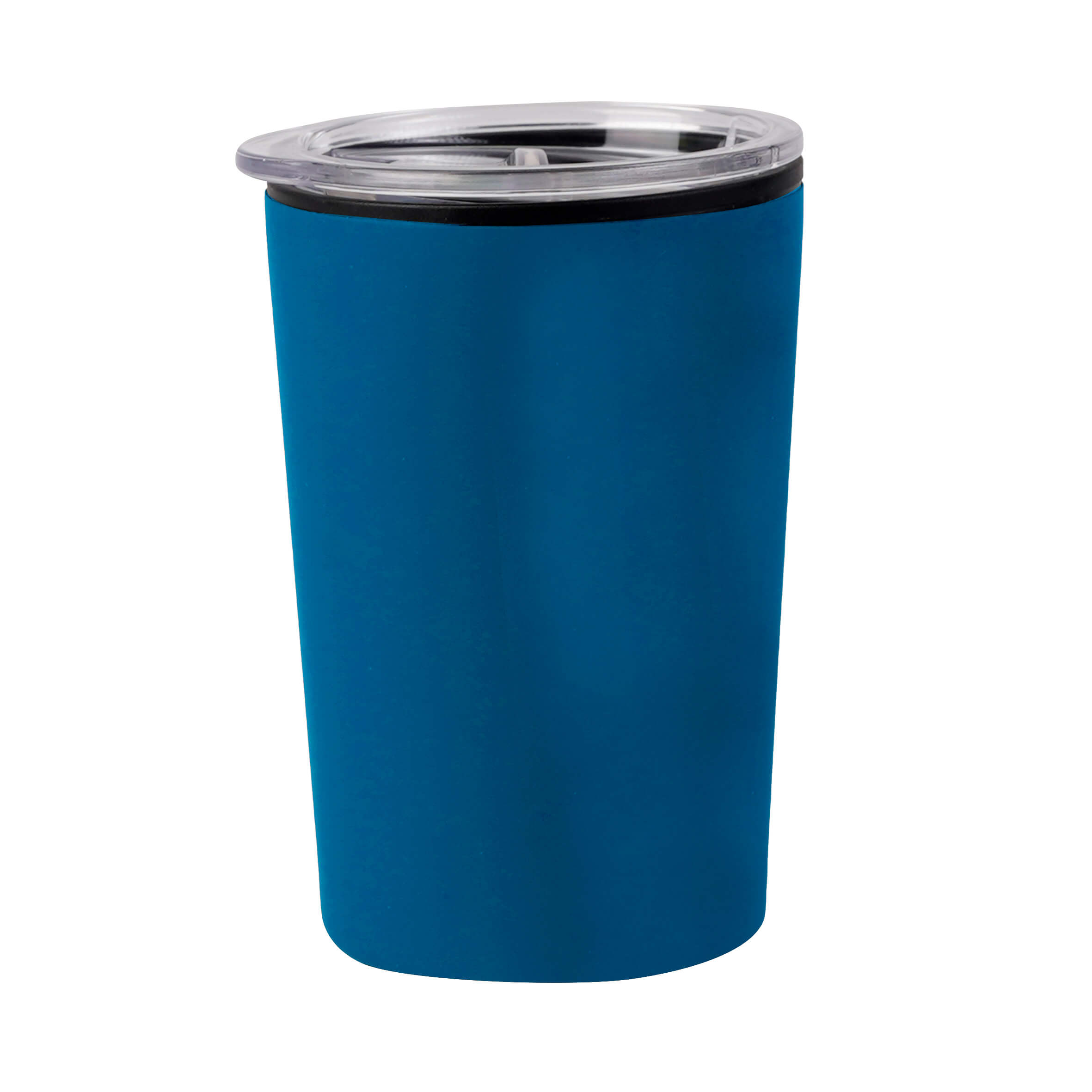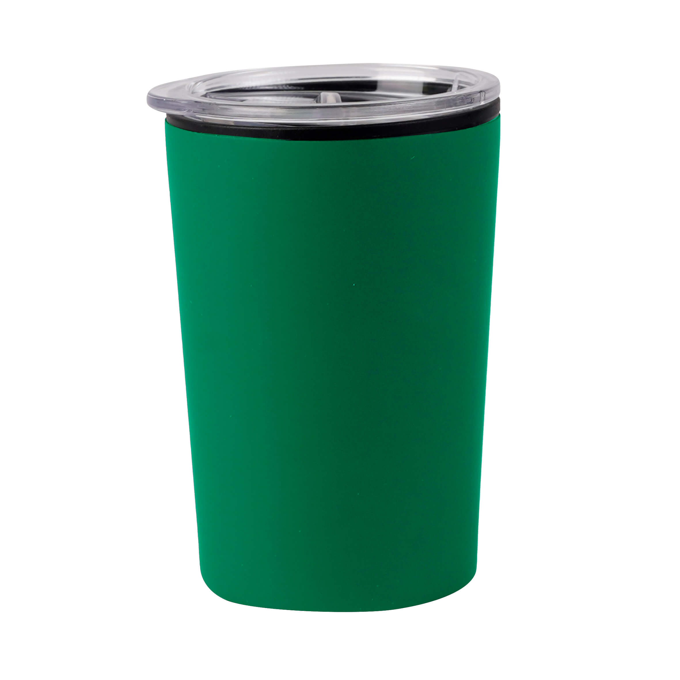 TOSHI Termo de doble pared con exterior de acero inoxidable e interior de plástico, con tapa de cierre a presión y seguro deslizable.
