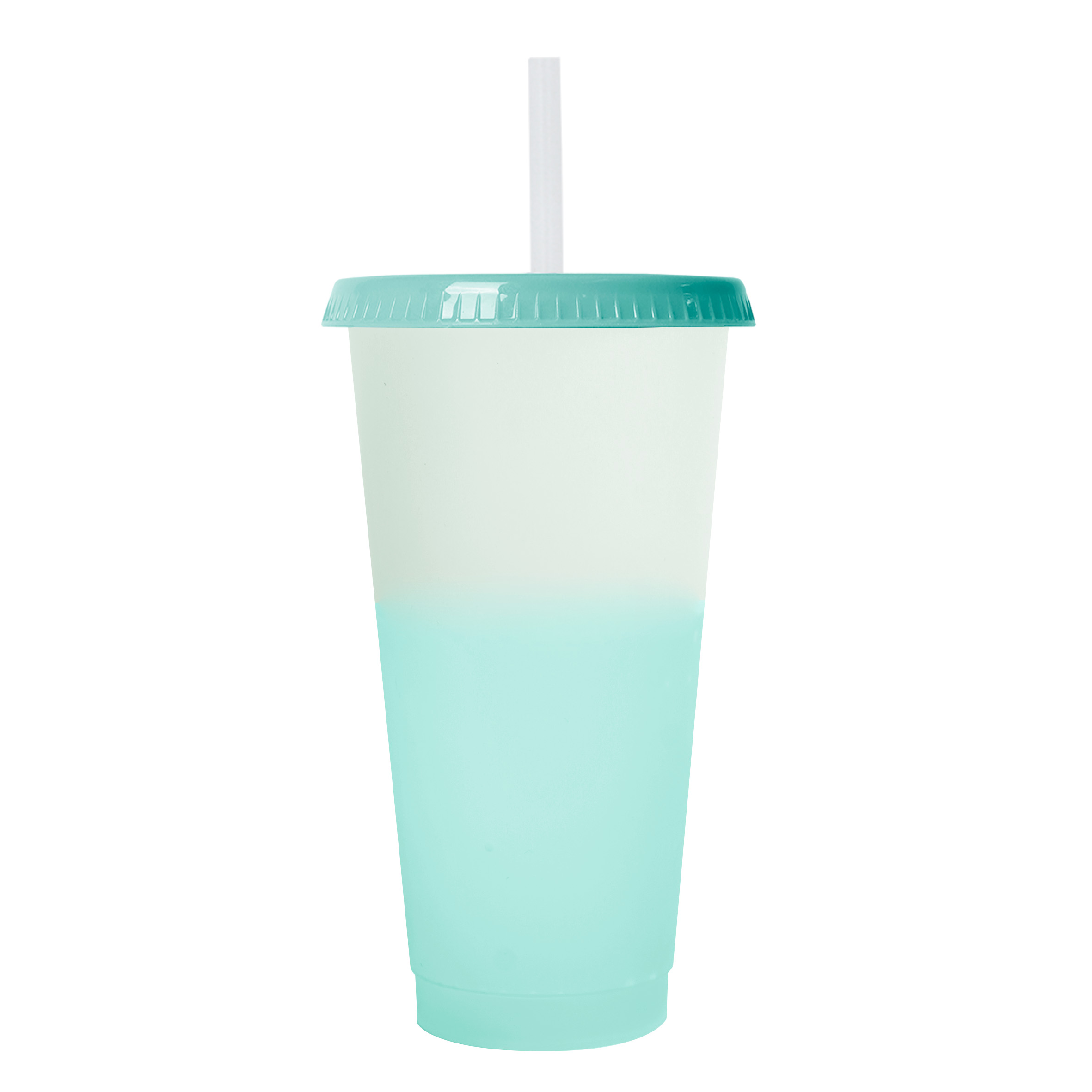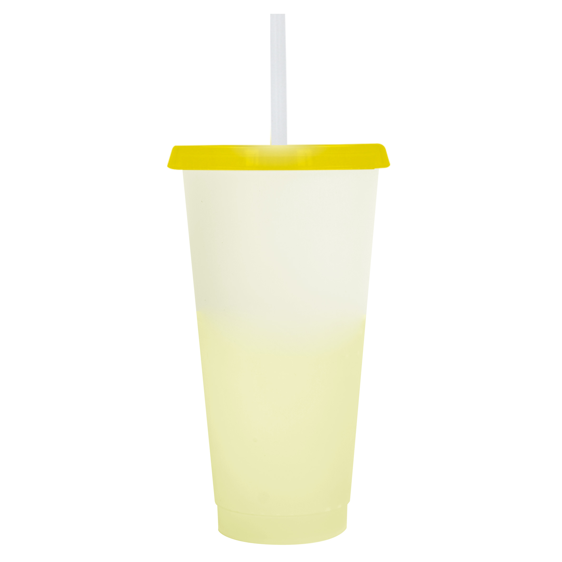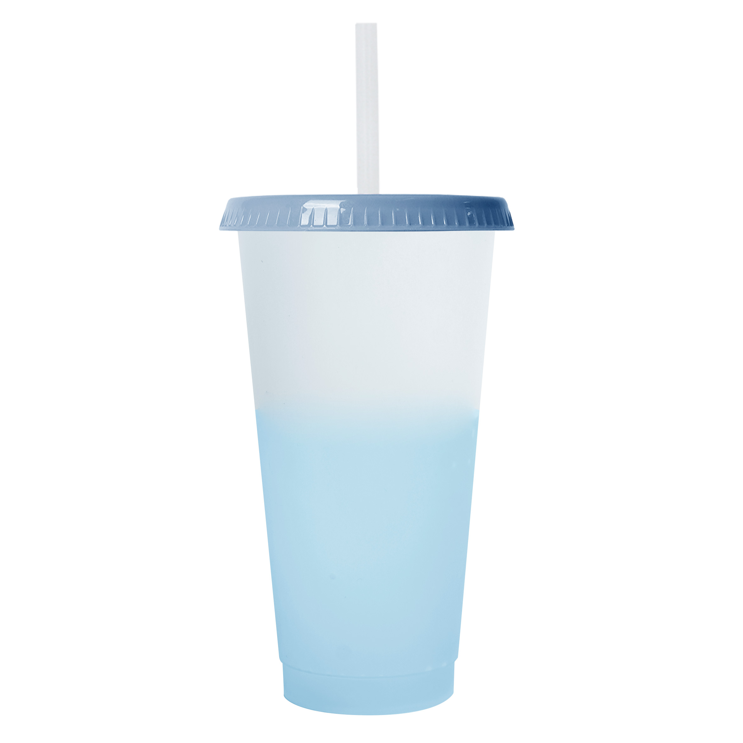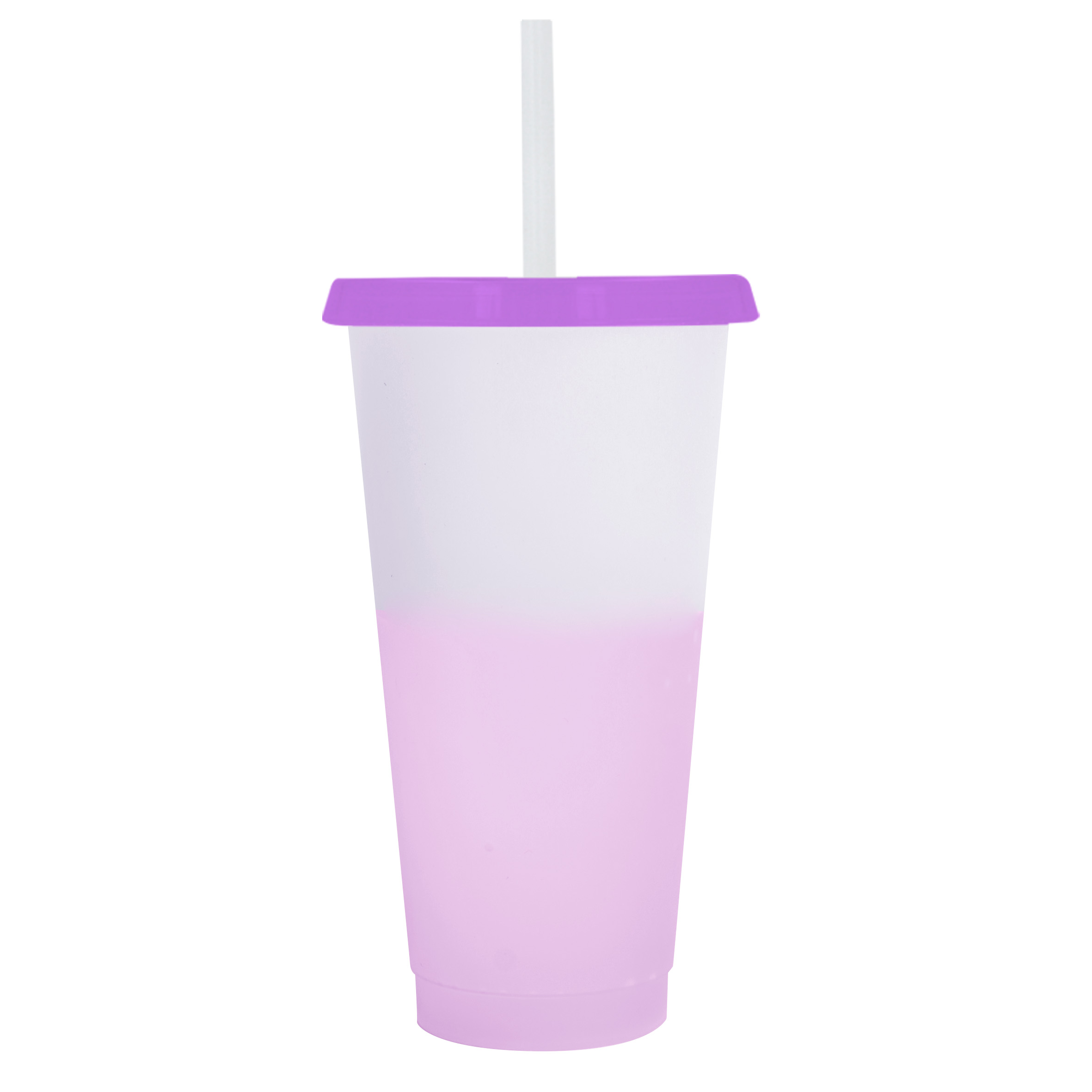 CROMATIC Vaso de plástico con acabado frost degradado y tapa solida. (Incluye popote).