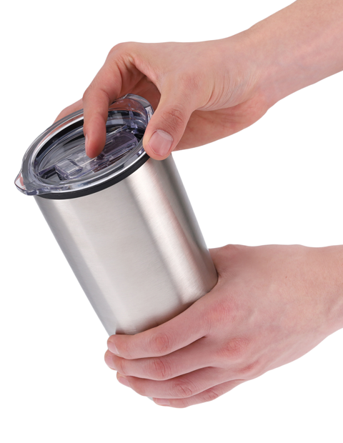 LATA TERMICA PREMIUM 17OZ PLATA Cilindro de acero con popote en tapa, listo para...