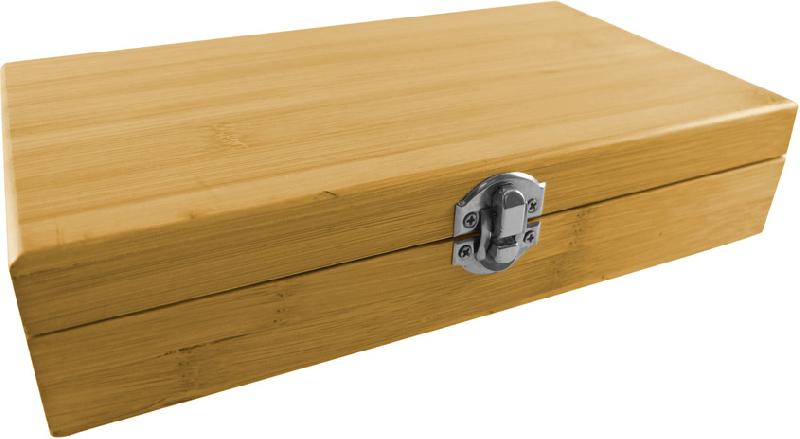 MATERIAL: Bambú MEDIDAS: 23 x 13 x 5 cm IMPRESION: Serigrafía, grabado láser, tampografía MED. EMPAQUE: 48,50 x 30,50 x 35,00 cm PESO EMPAQUE: 15,50 kg PIEZAS EMPAQUE: 24 pzs